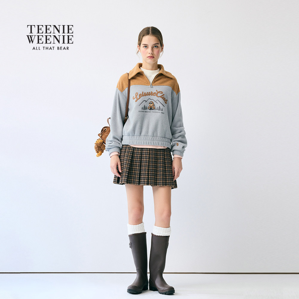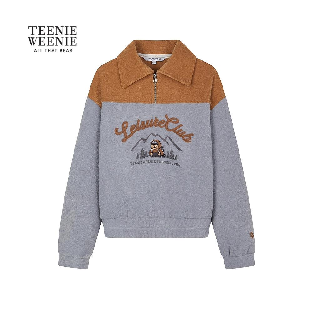 TeenieWeenie小熊女装卫衣2025冬季新款时尚拼接半拉链款翻领上衣