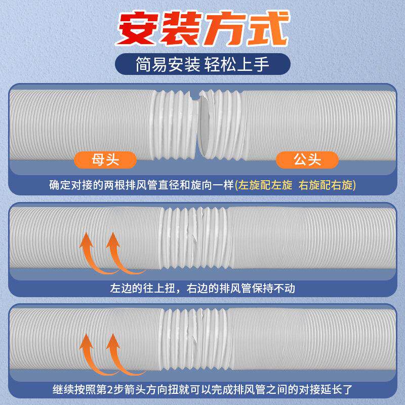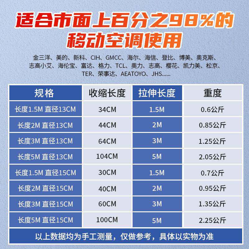 移动空调排风管排气管排热管钢丝伸缩管延长管加厚加长管15cm13cm