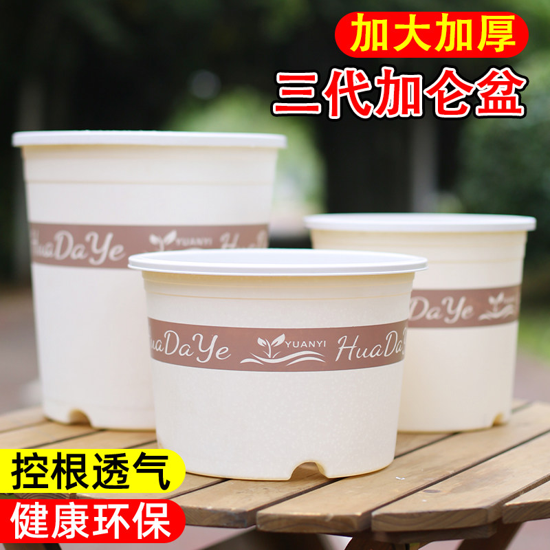 加厚圆形白色三代加仑花盆控根透气简约耐用塑料大号花卉绿植花盆