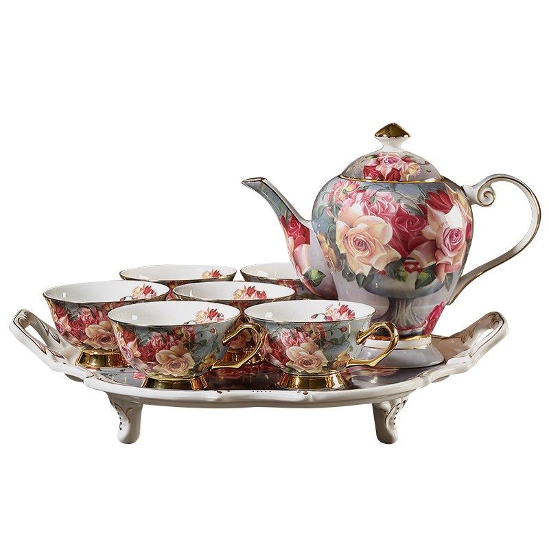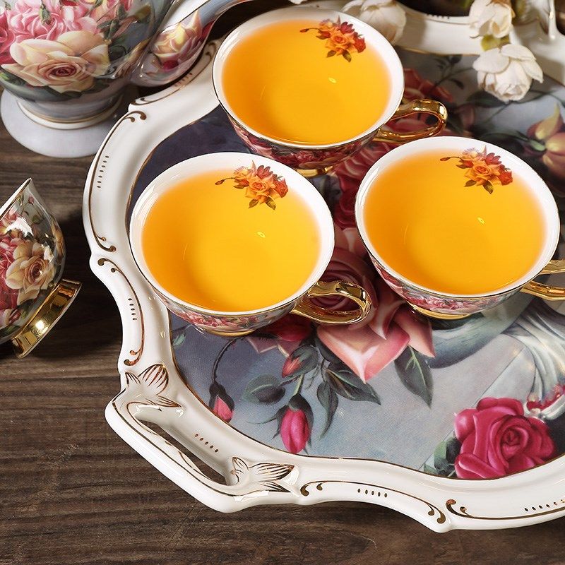古典玫瑰欧式骨瓷咖m啡茶具套装茶道奢华陶瓷下午茶茶壶杯具带托