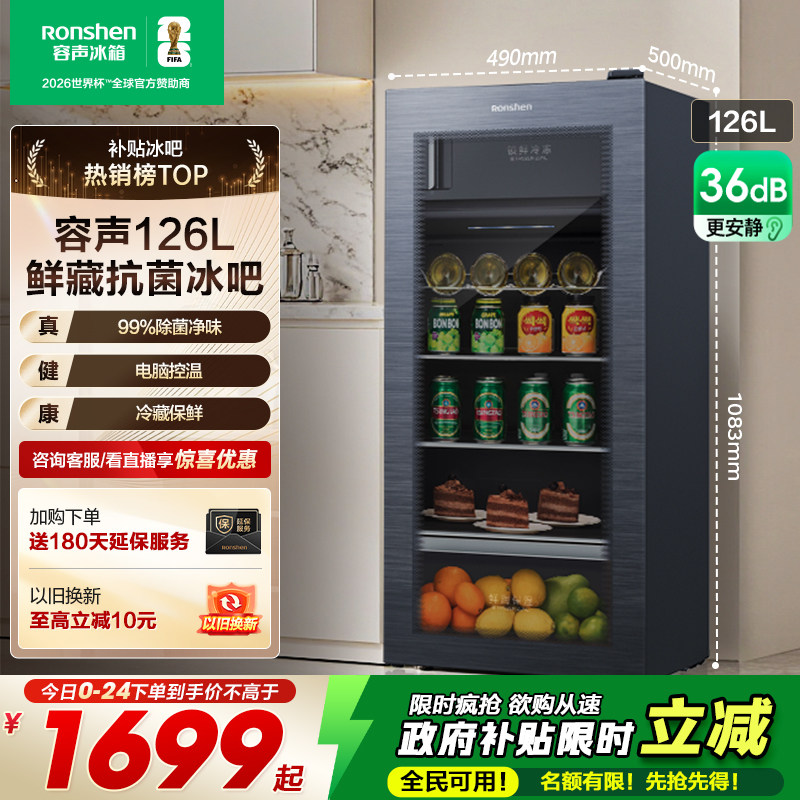 容声 126升办公室冰吧玻璃门家用客厅小型冰箱酒柜冷藏保鲜冷柜