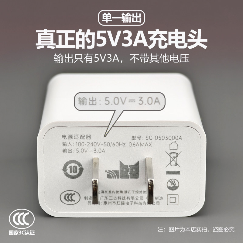 充电头5V3A充电器15W美容仪充电宝无线充小风扇音响5V3000mA毫安电源适配器3C认证正品5伏3安USB插头安卓通用