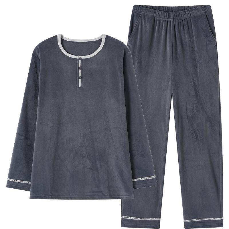 男士睡衣秋冬季三层加厚加绒珊瑚绒夹棉保暖中老年爸爸家居服套装