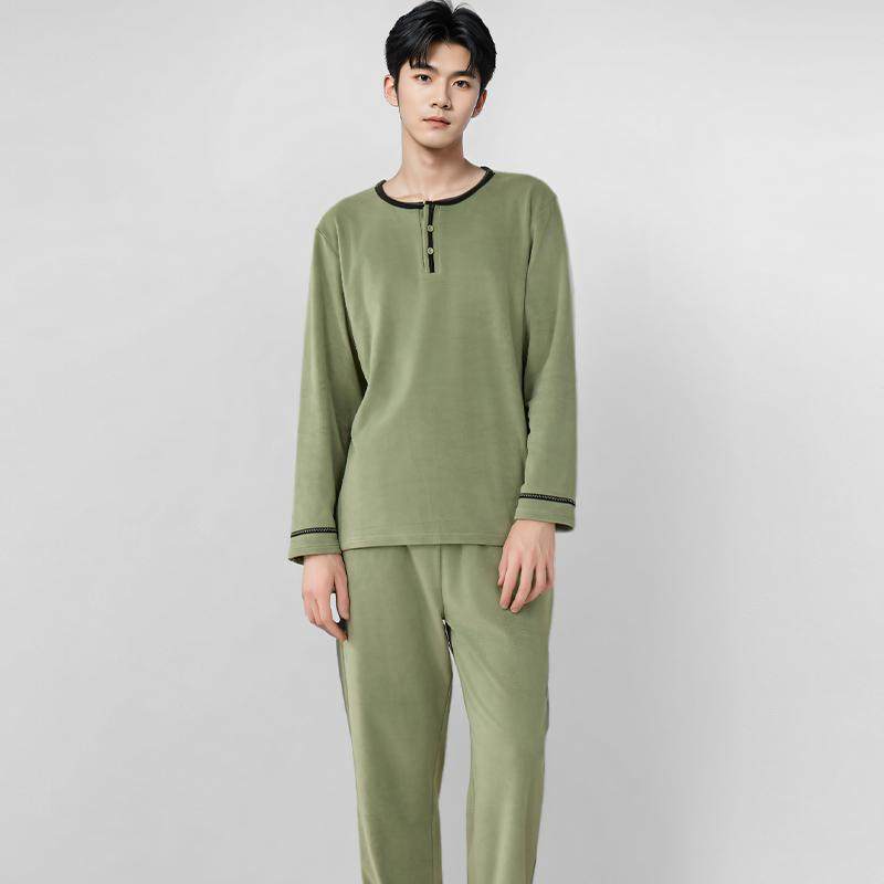 海岛绒睡衣男2025秋冬新款薄绒磨毛家居服套装加肥大码舒适柔软