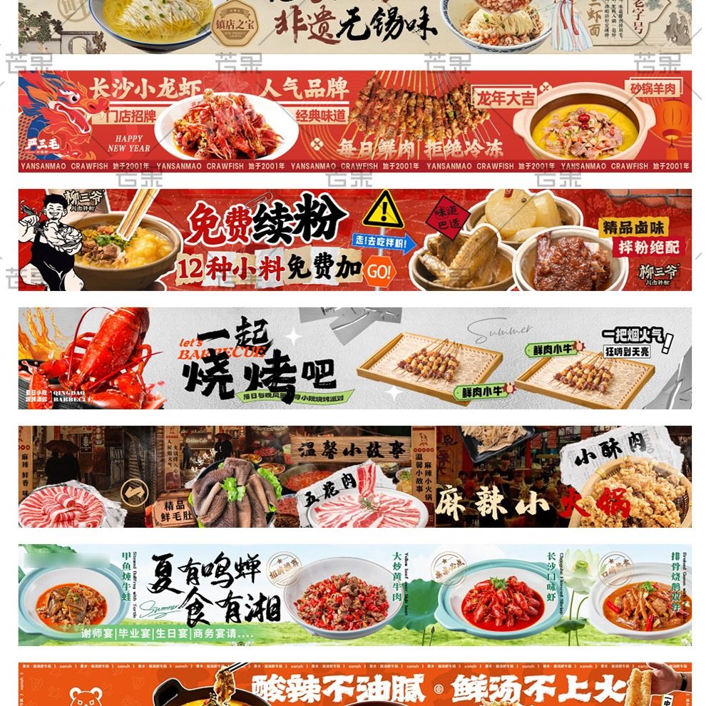 电商餐饮美食品五连图火锅烧烤外卖宣传展板海报模板psd设计素材