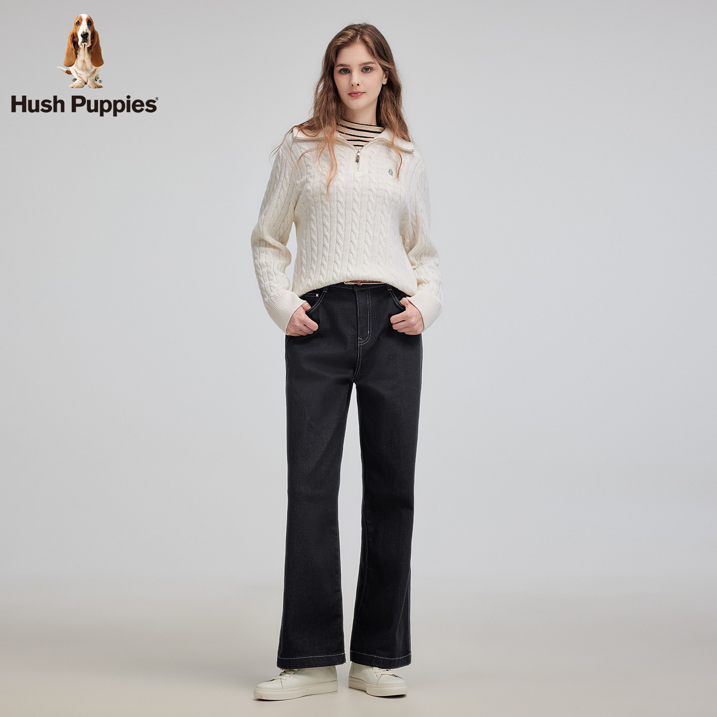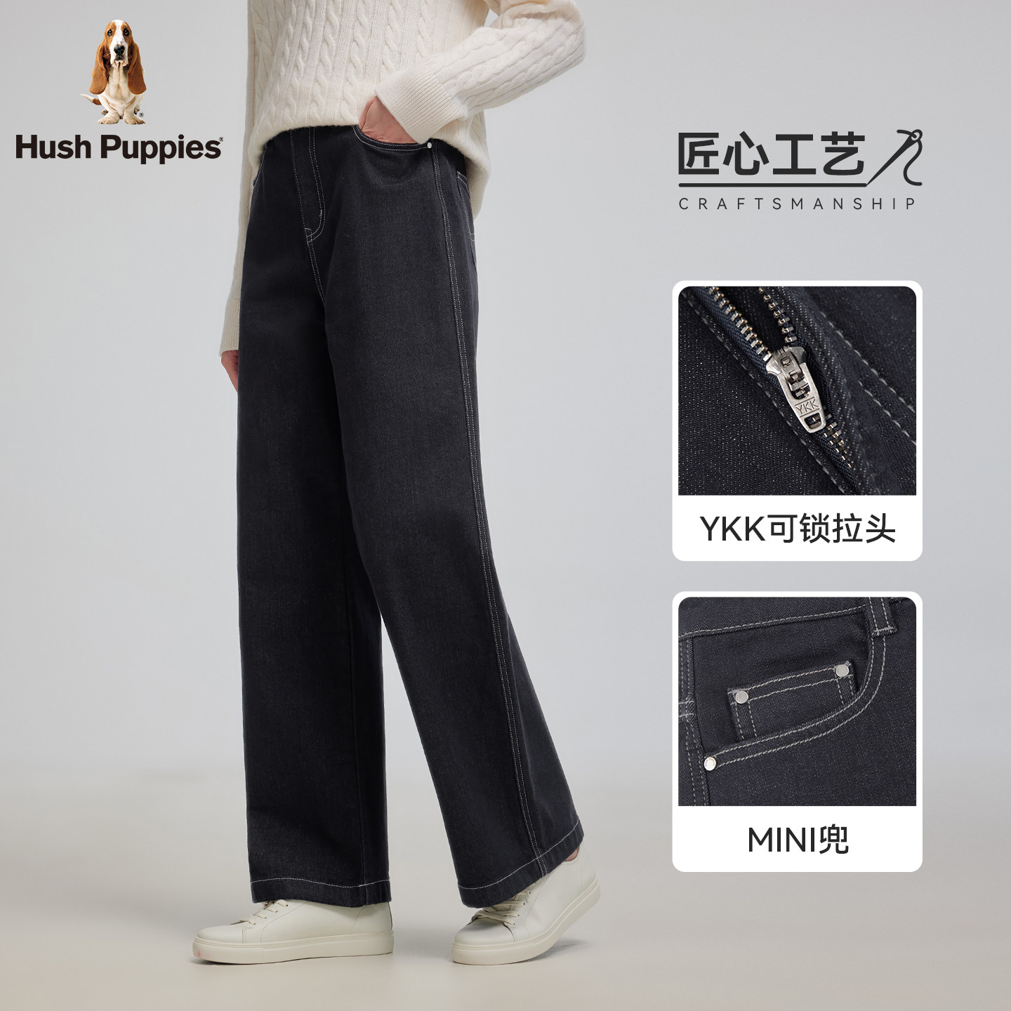 【百搭显瘦】暇步士女装2025冬季新款气质复古休闲加绒阔腿牛仔裤