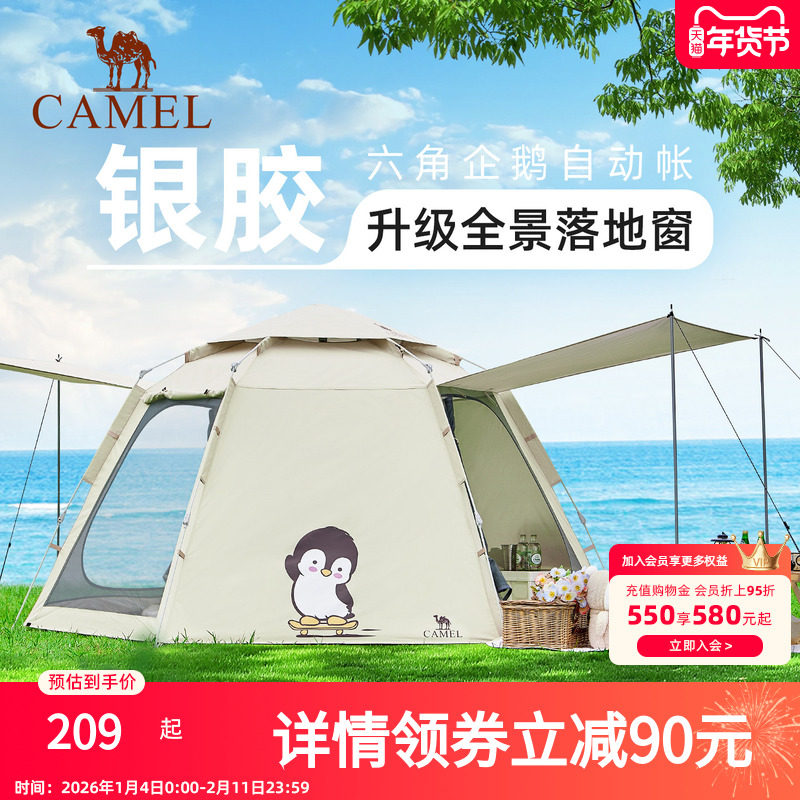 骆驼六角帐篷户外便携式折叠2025新款全自动露营装备全套过夜防雨