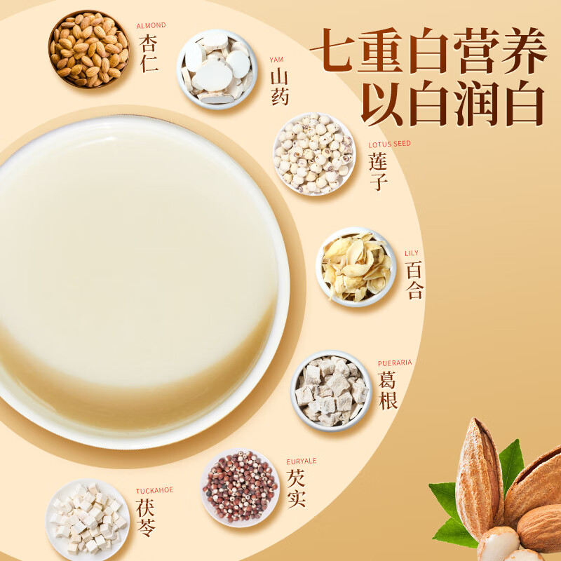 杏仁七白饮纯杏仁粉官方旗舰店代餐粉营养早餐冲泡冲饮山药茯苓
