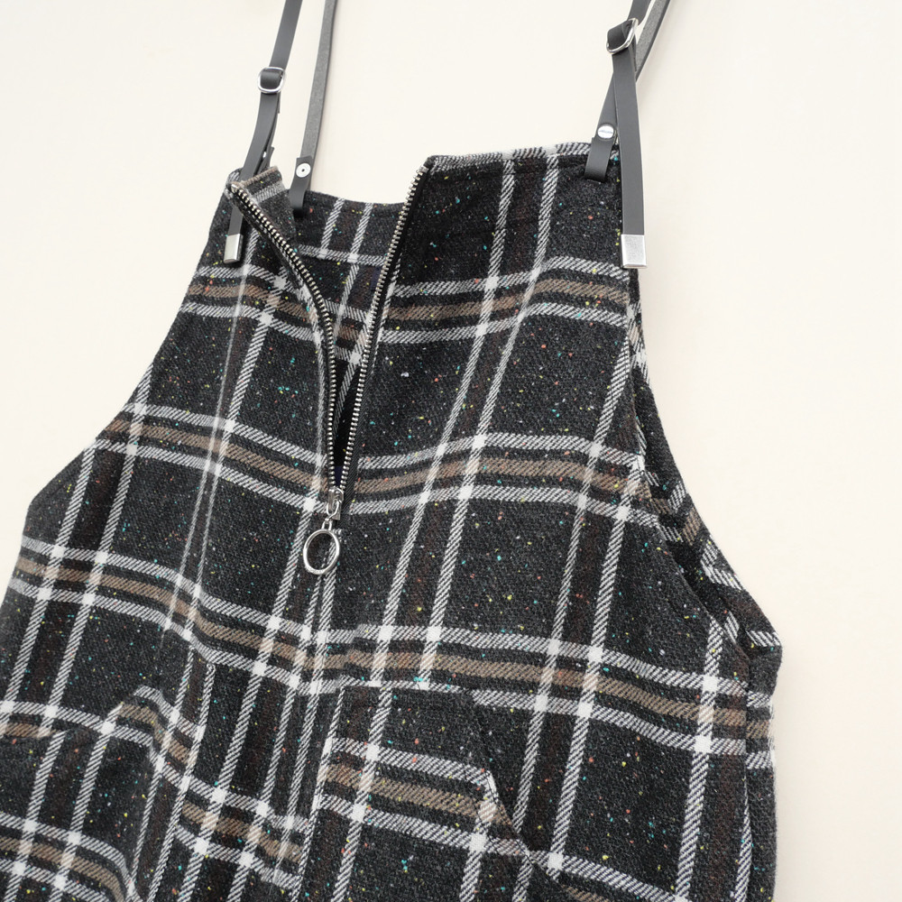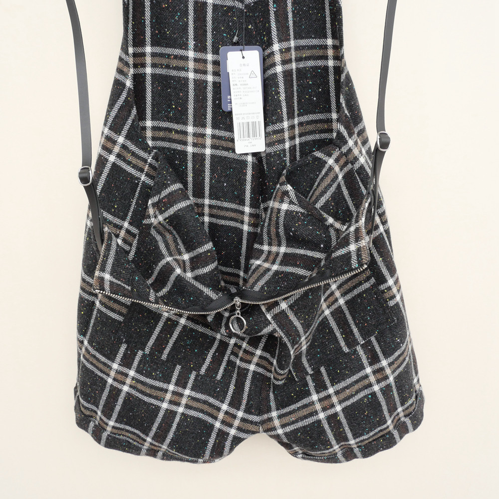 拉系列/S/M/L专柜正品清仓女秋冬羊毛宽松外搭背带短裤4A5036格子