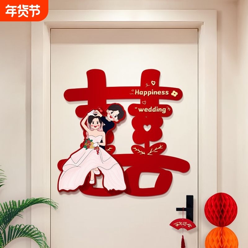 喜字贴结婚专用大门入户门房门贴卧室婚房布置装饰囍字立体贴纸