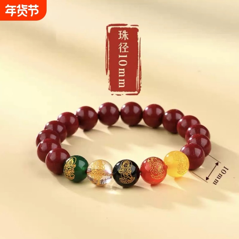 普陀山朱砂手串珠蛇年手链本命年普贤护身手镯官方旗舰店正品