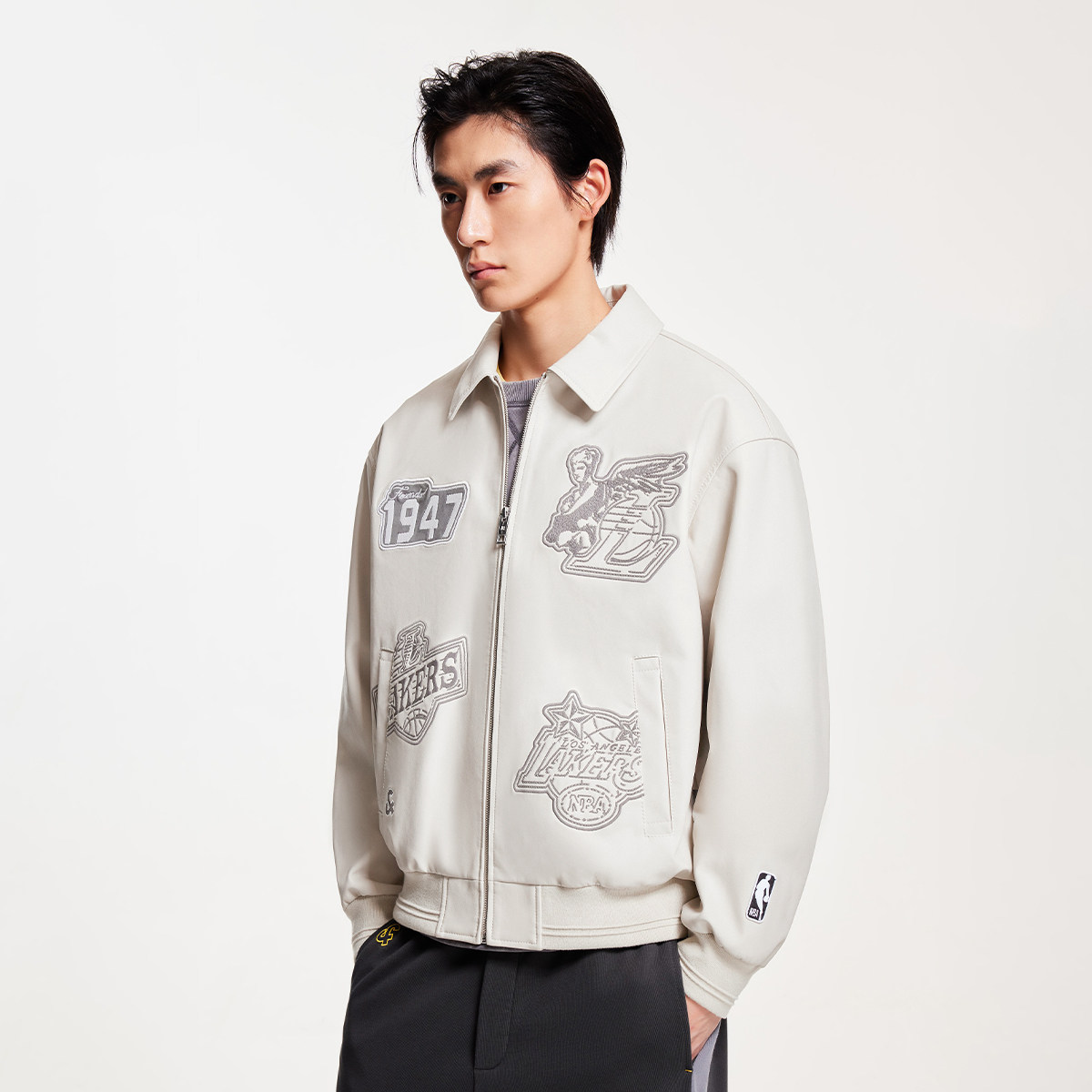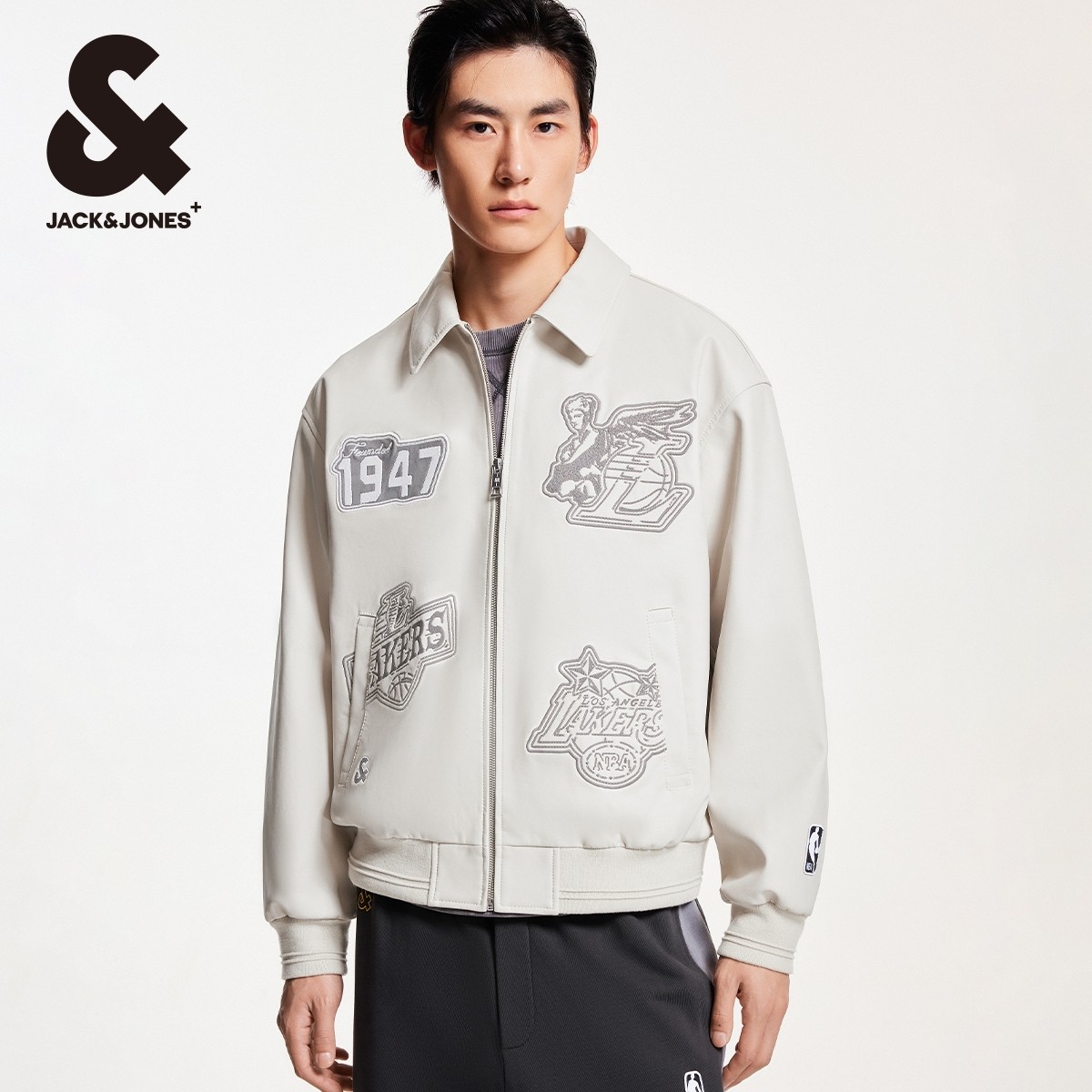 杰克琼斯奥特莱斯NBA联名男装夹克秋季新款时尚刺绣贴布翻领外套