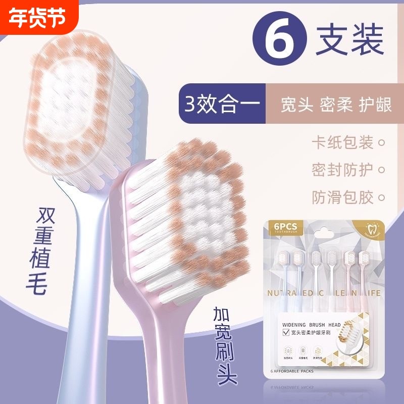 山超市同款软毛牙刷高档成人情侣家用深层护龈男女清洁家庭装宽头