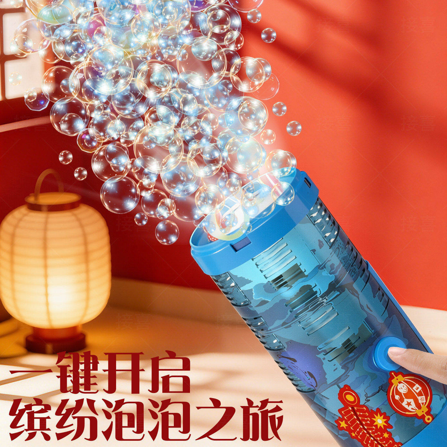 乐乐鱼2026新款电动新年烟花泡泡机醒舞狮灯笼儿童玩具手持加特林