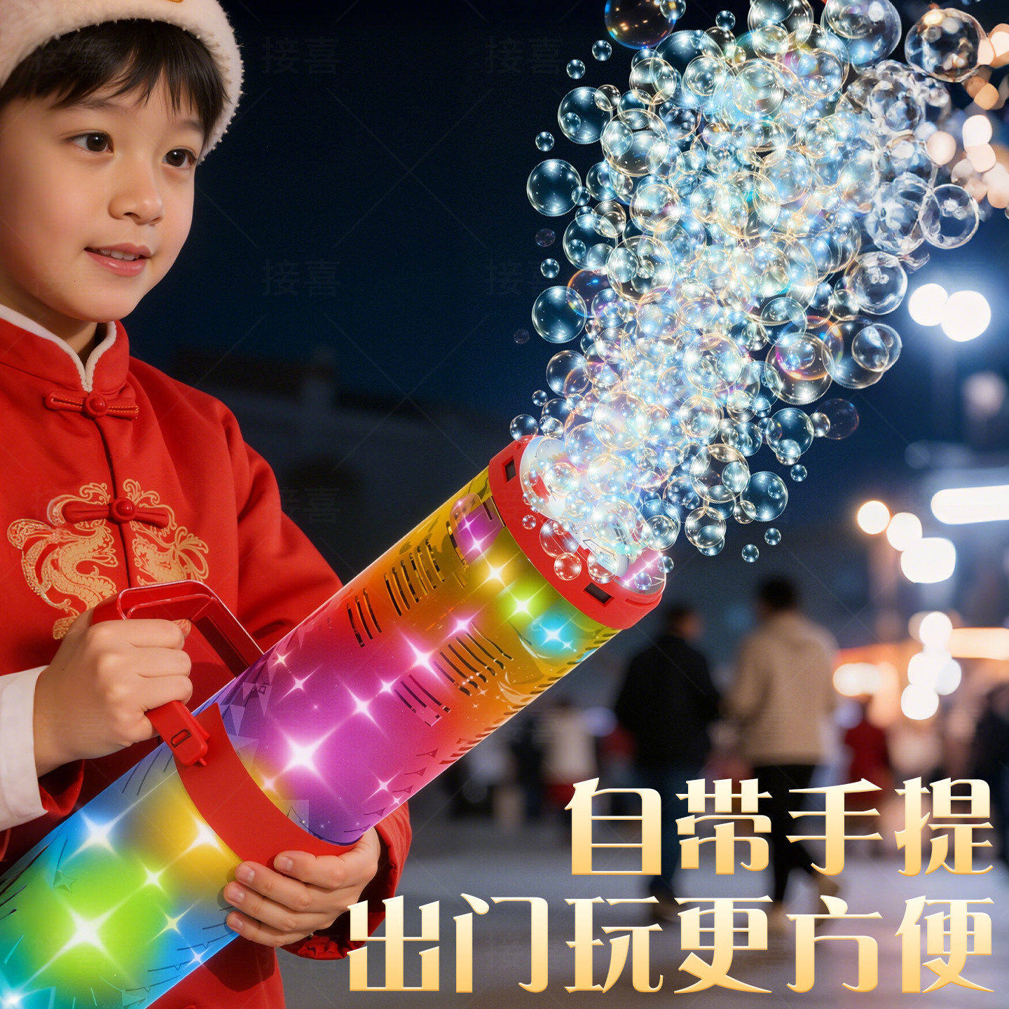 烟花加特林新年礼花泡泡机儿童手持2026吹泡泡全自动玩具电子新款