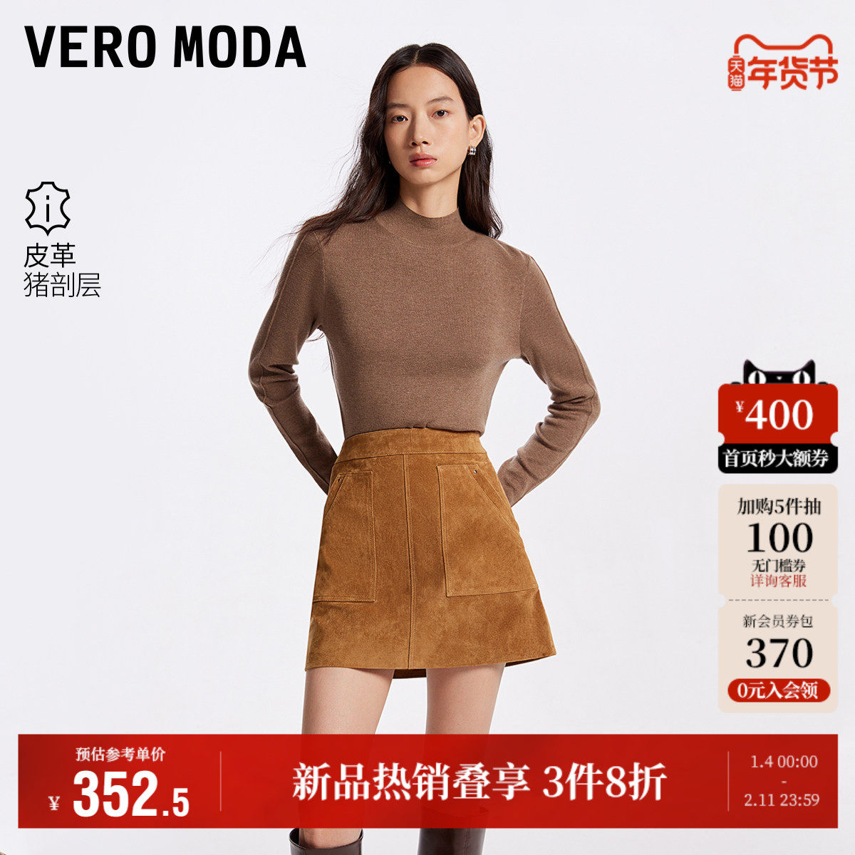 Vero Moda奥莱半身裙秋冬新款高街时髦高腰A字皮裙潮流短裙流行