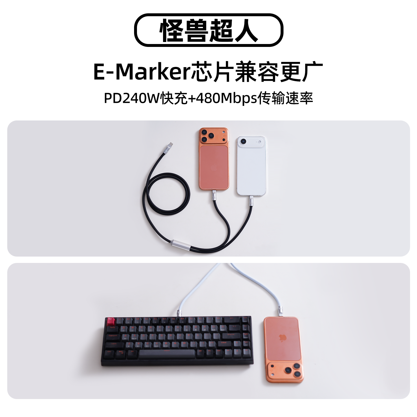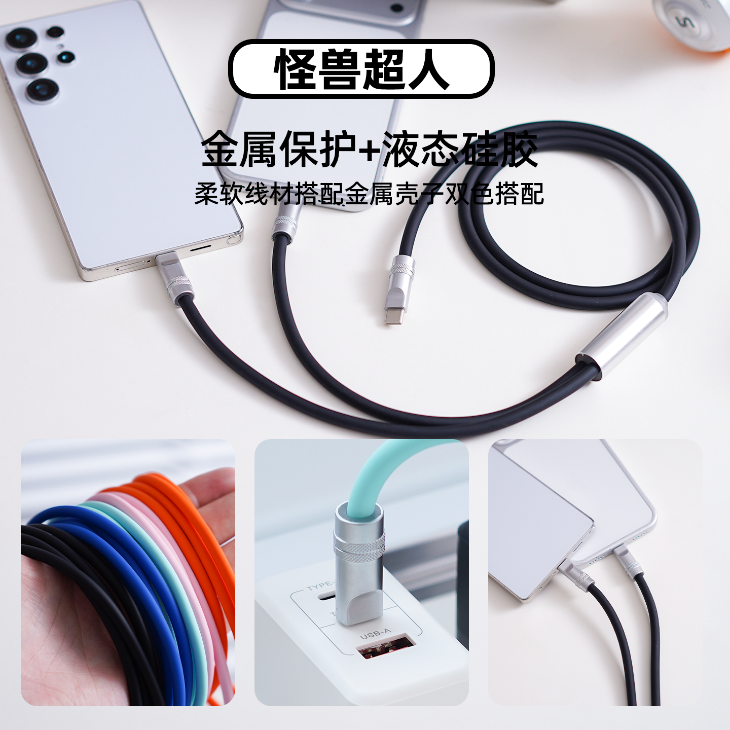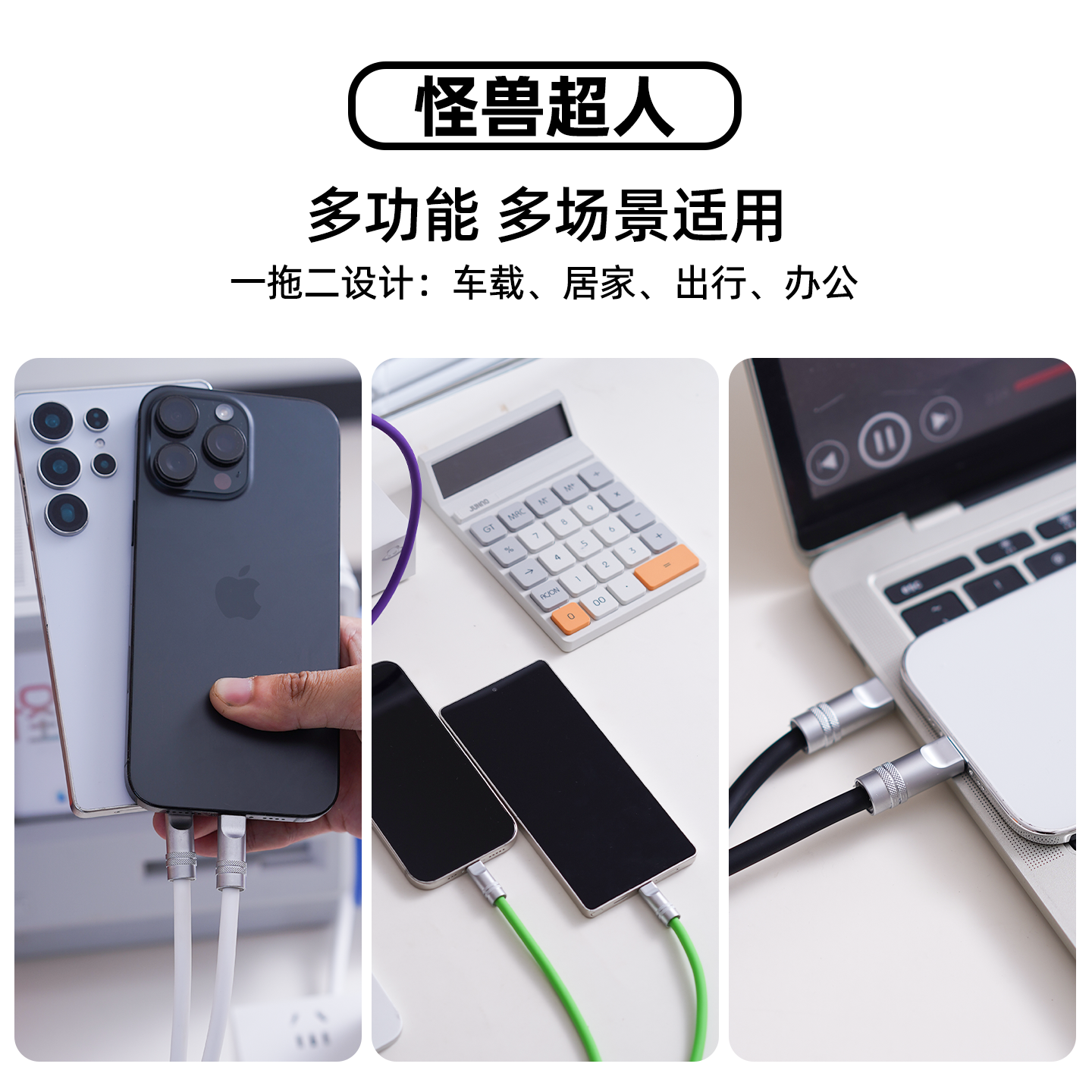 怪兽超人 多功能两用Typec二合一100W数据线适用苹果17充电线华为安卓小米一拖二接口车载充电器线双C头快充