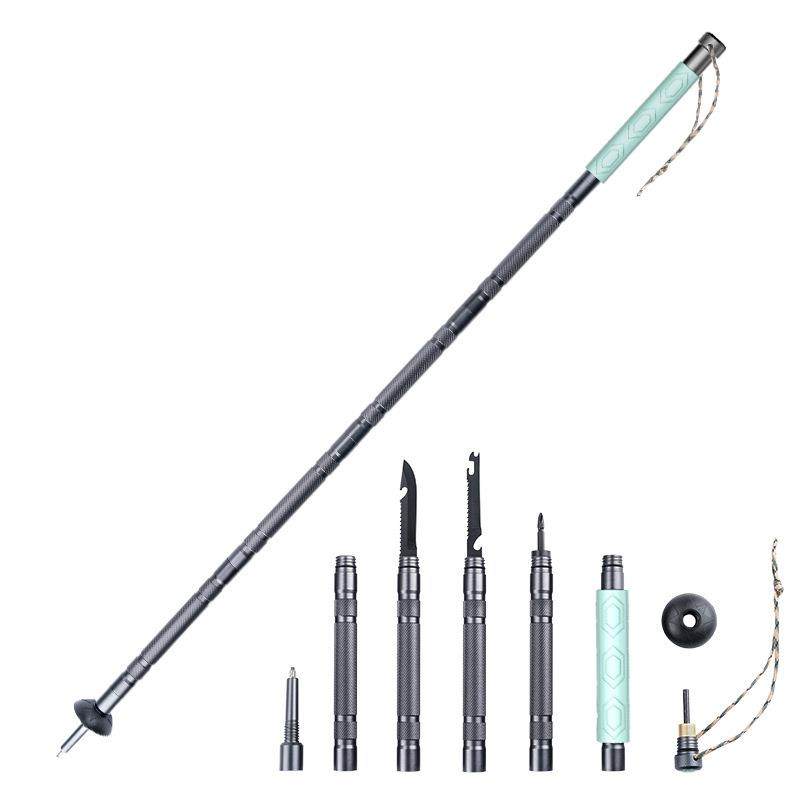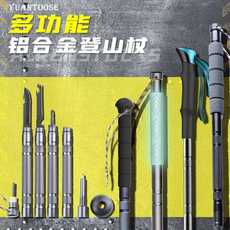 铝合金多功能登山杖 户外徒步远足轻质5节伸缩折叠多功能登山杖