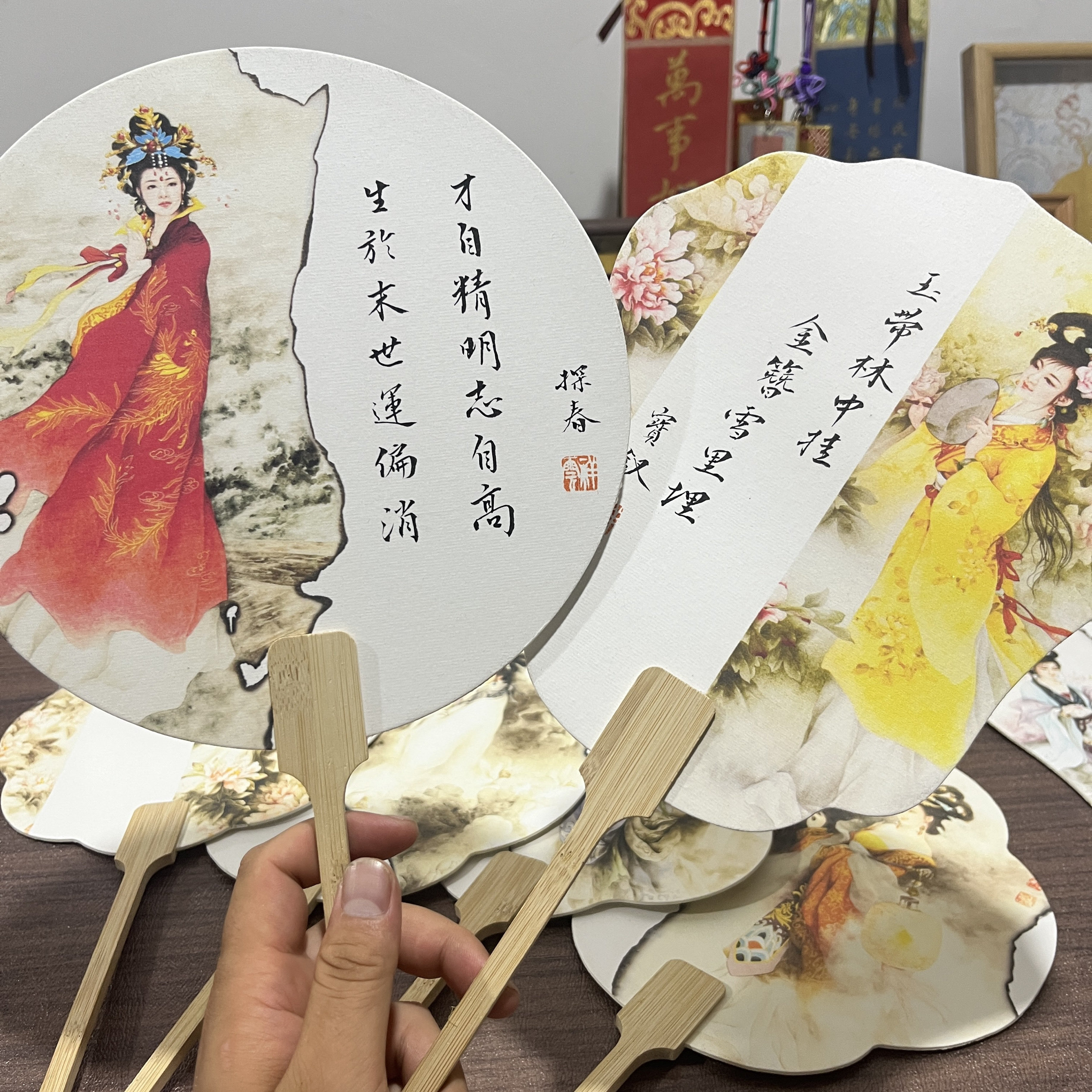 【金陵十二钗】新款文创空白团扇半生熟带图案到手12把