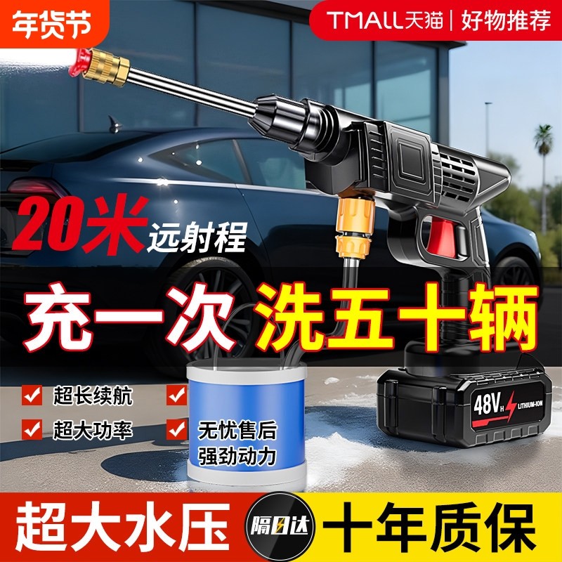 无线洗车机2025新款高压水枪家用清洗车大功率充电锂电池增压神器