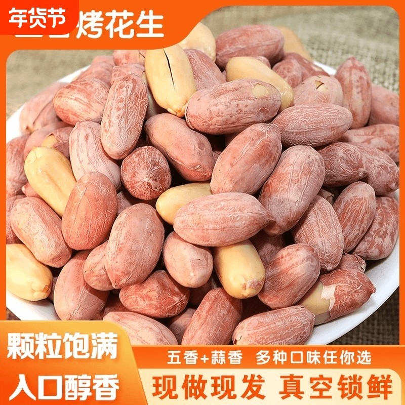 去壳花生米带皮烘烤五香奶香蒜香味咸干酥脆东北特产零食下酒菜