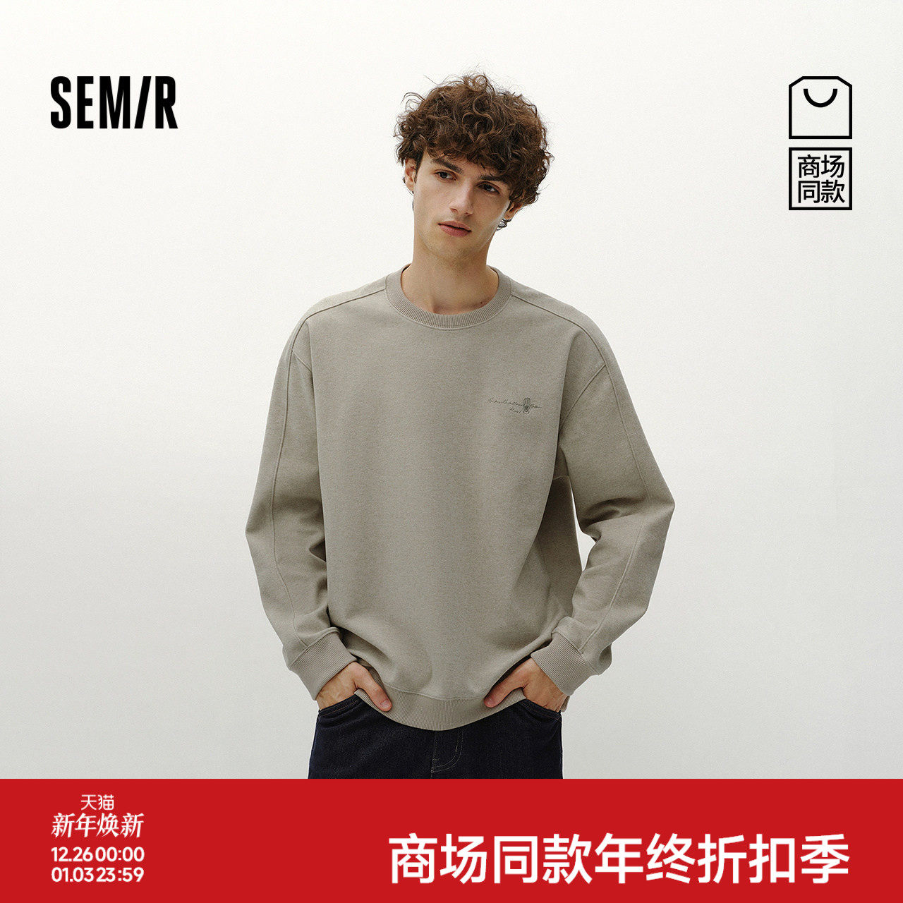 商场同款|森马卫衣男冬花纱仿呢料2025新款国风绣花休闲圆领上衣