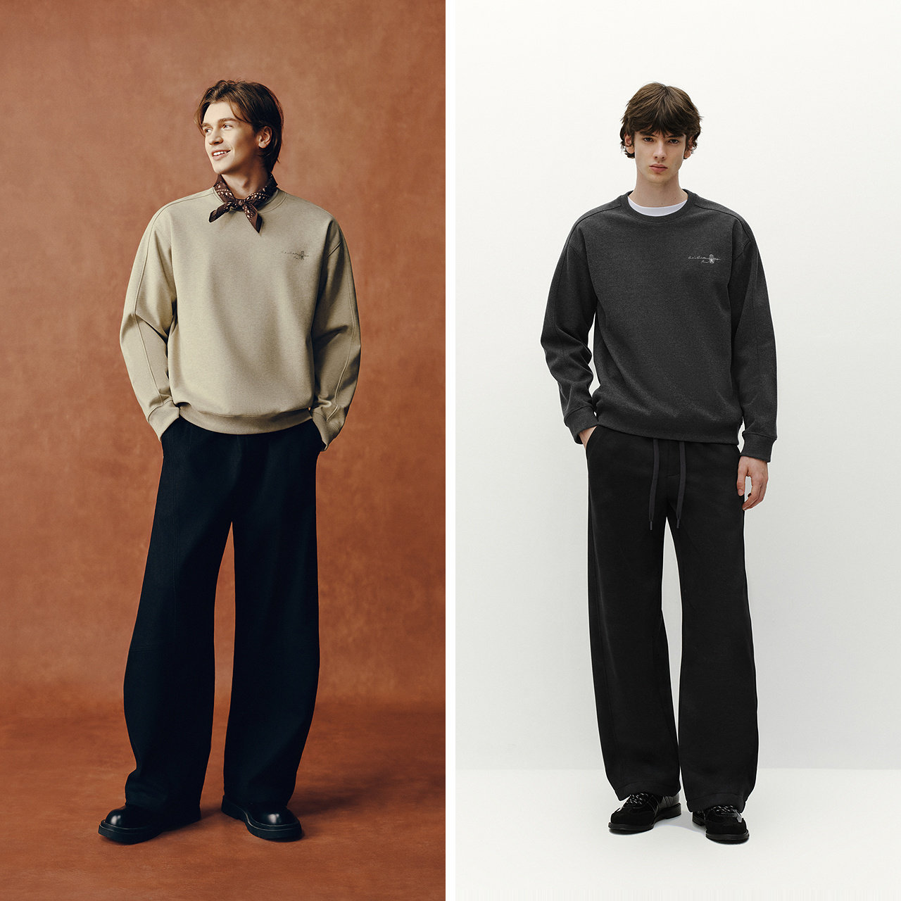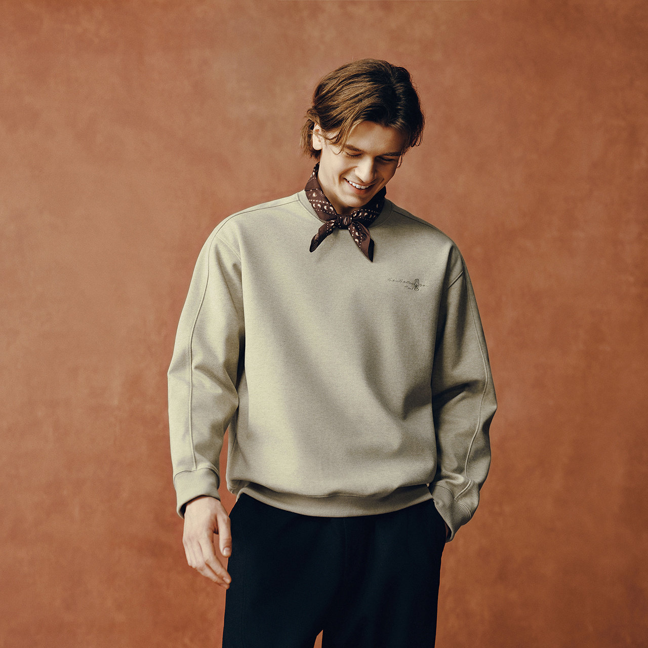 班尼路重磅卫衣男款秋季基础纯色圆领内搭男款宽松大码正肩套头衫