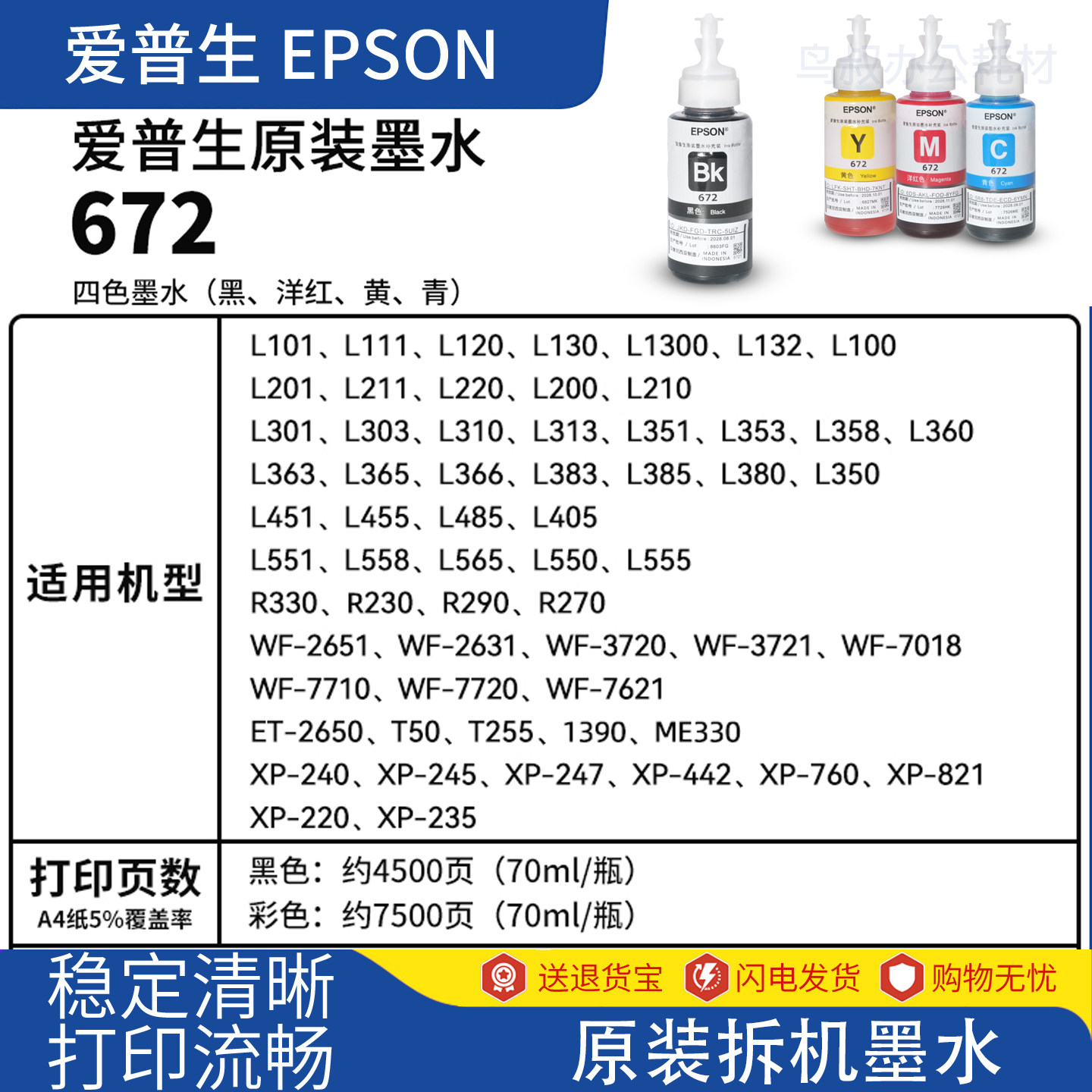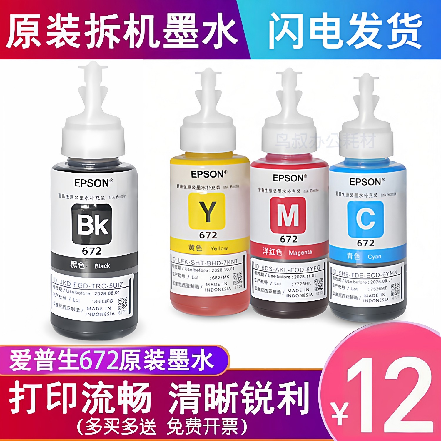 爱普生672墨水原装EPSON黑L130L310L360L383L380彩色打印机补充装