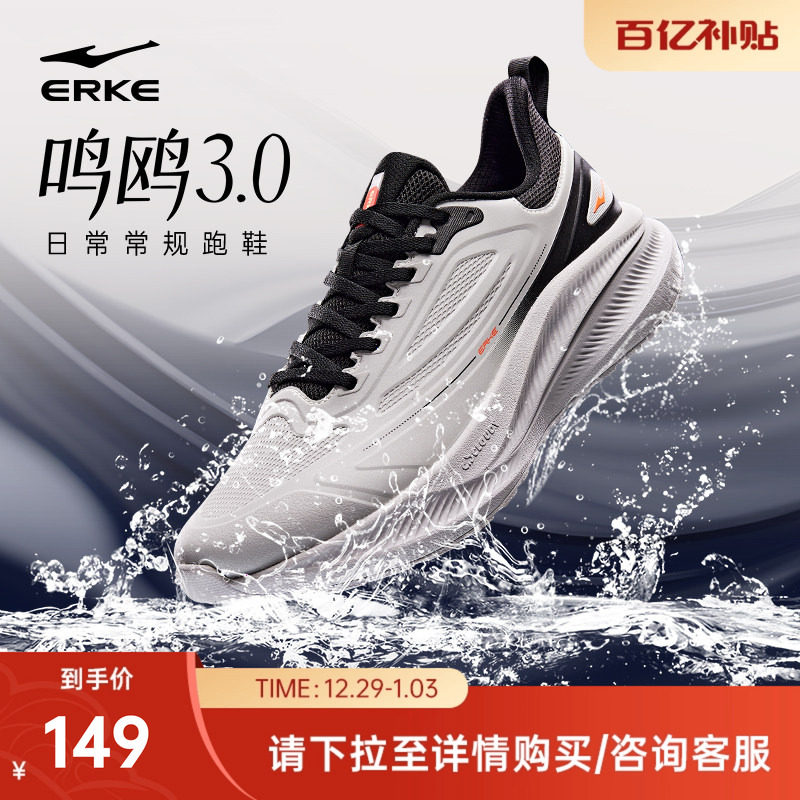 鸣鸥3鸿星尔克运动鞋冬季跑步鞋男新款皮面防水跑鞋减震休闲男鞋