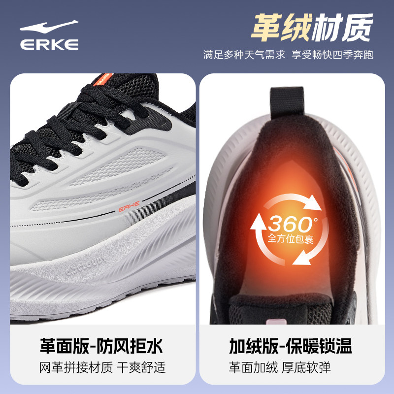 鸿星尔克运动鞋冬季新款软底减震男鞋皮面防水跑步鞋加绒轻便跑鞋