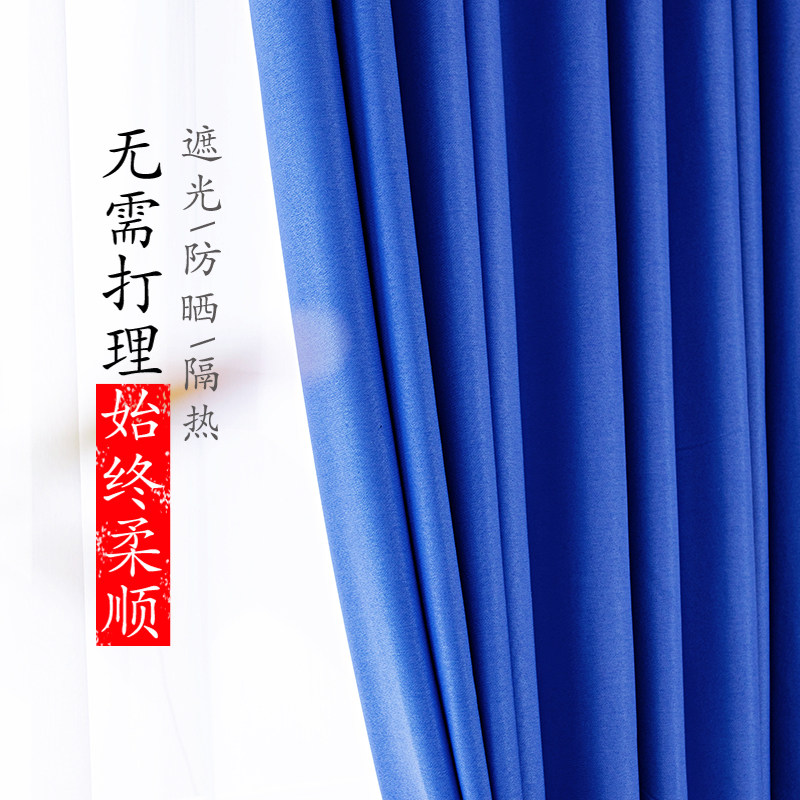 克莱因蓝网红同款窗帘纯色简约大气轻奢卧室客厅定制遮光帘落地窗