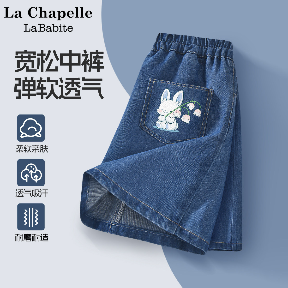 拉夏贝尔女童短裤夏季外穿2025新款薄款裤子中大童夏装儿童牛仔裤