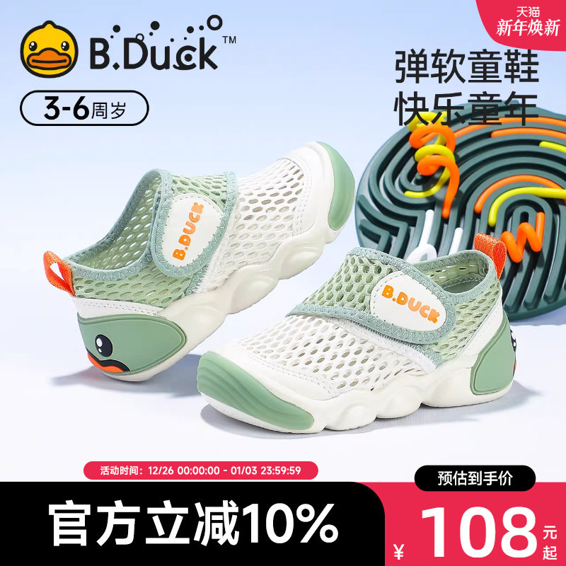 BDuck小黄鸭童鞋儿童运动鞋2025新款夏季透气网面宝宝跑步鞋软底