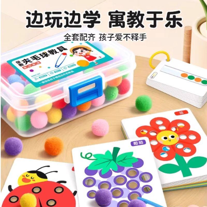 夹毛球早教教具蒙氏专注力训练幼儿益智玩具颜色启蒙认知精细手指