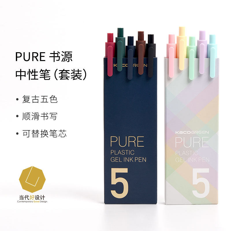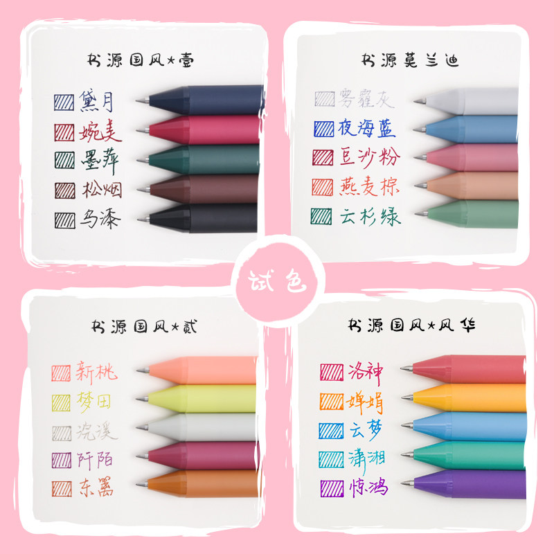 KACO书源复古色中性笔按动彩色水笔莫兰迪马卡龙色学生彩色中性笔国家博物馆联名手帐签字笔芯ins冷淡风0.5mm