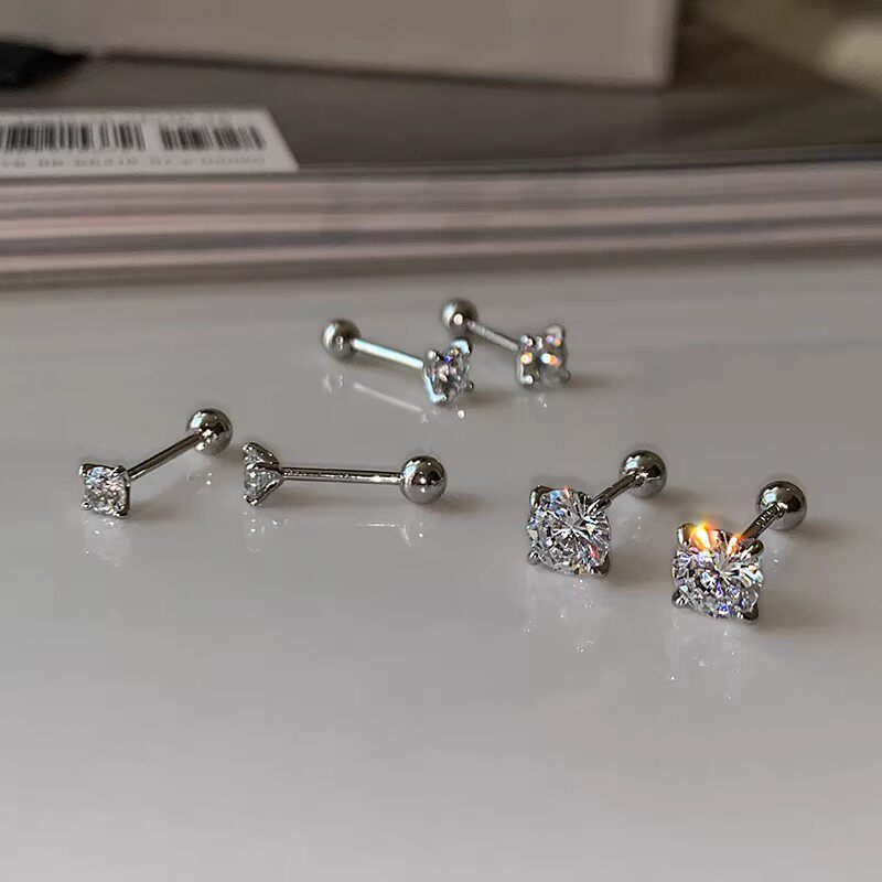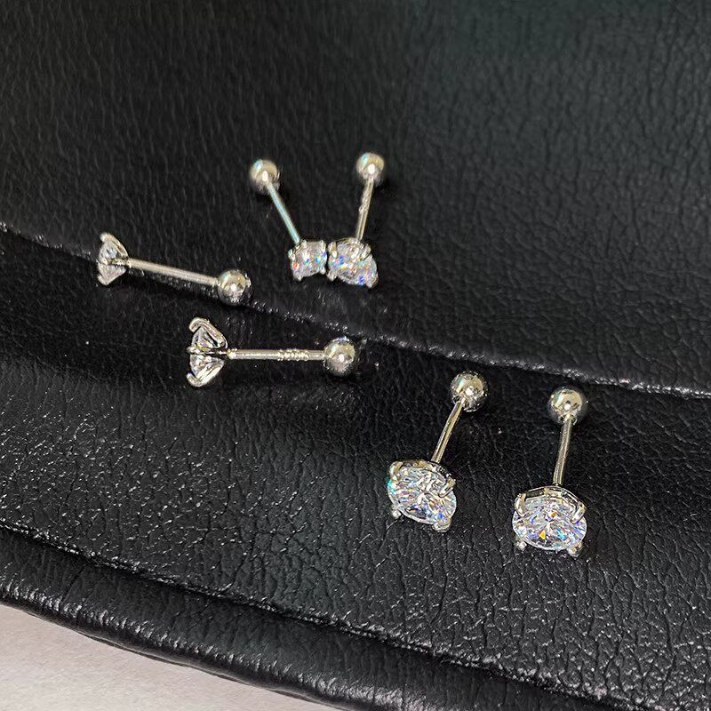 999纯银耳钉女养耳洞耳骨钉小众高级感锆石耳蜗钉水钻耳环银耳饰