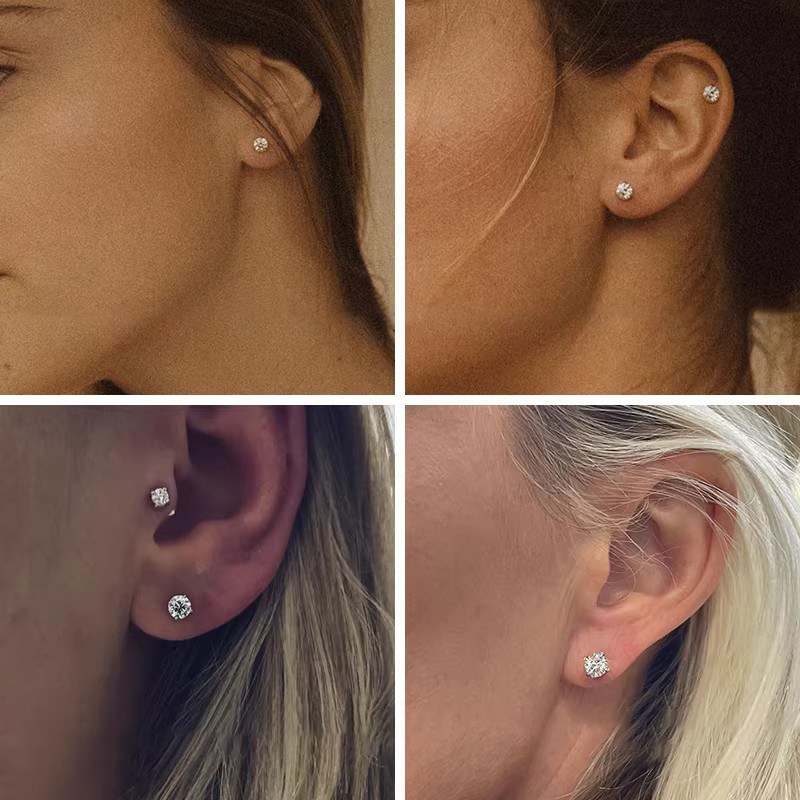 999纯银养耳洞爆闪单钻石小耳钉耳蜗耳骨钉睡觉免摘耳环耳饰锆石