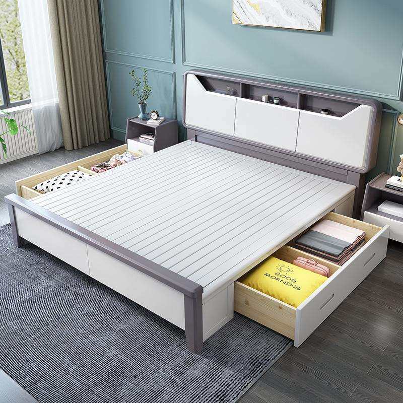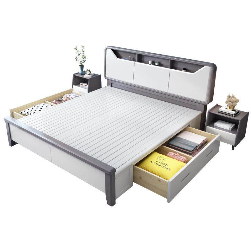 白色实木床1.8米双人床现代简约1.5m主卧经济型储物民宿高箱婚床