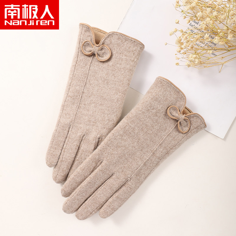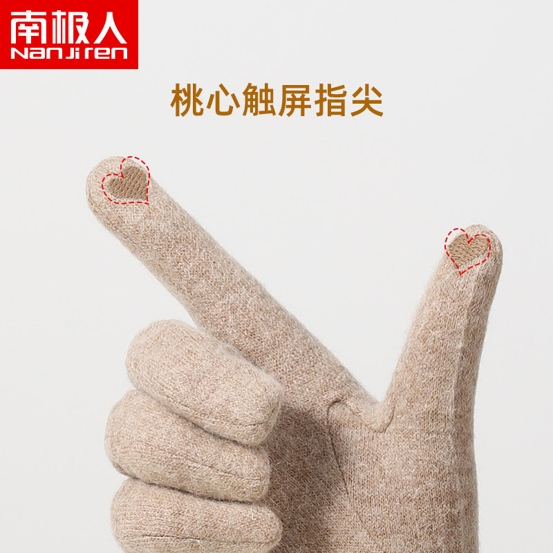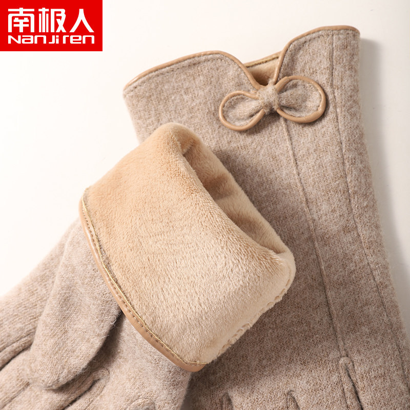 南极人手套女冬季加绒保暖羊毛手套薄款秋季开车骑行可触屏手套H