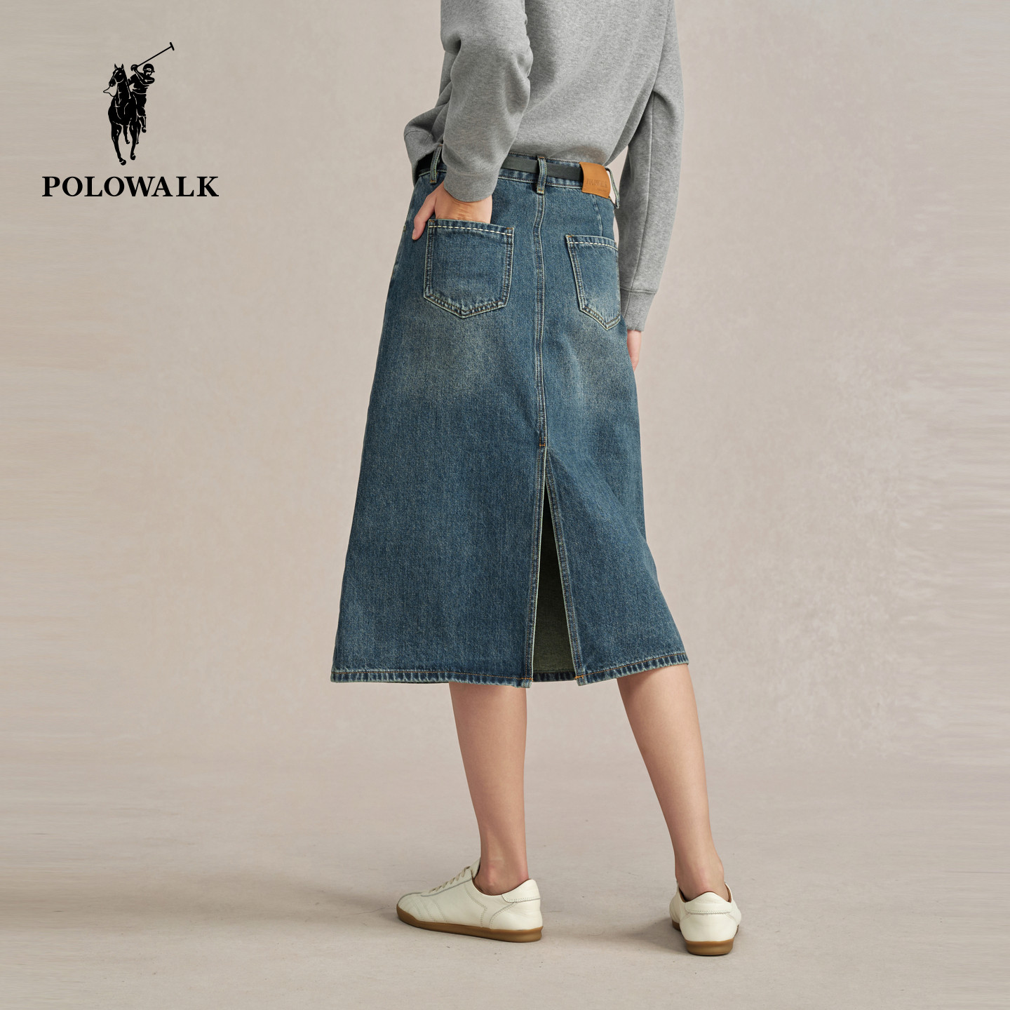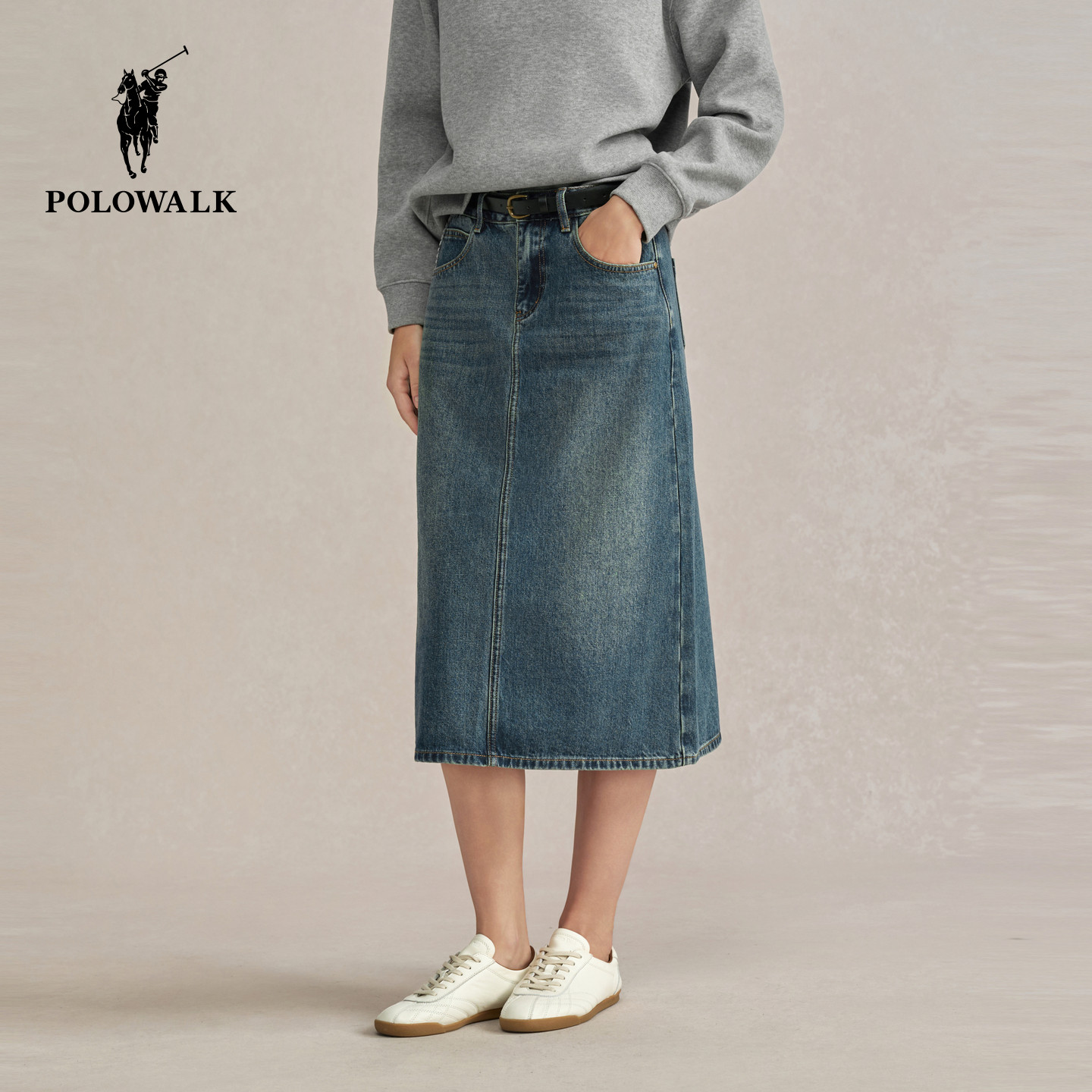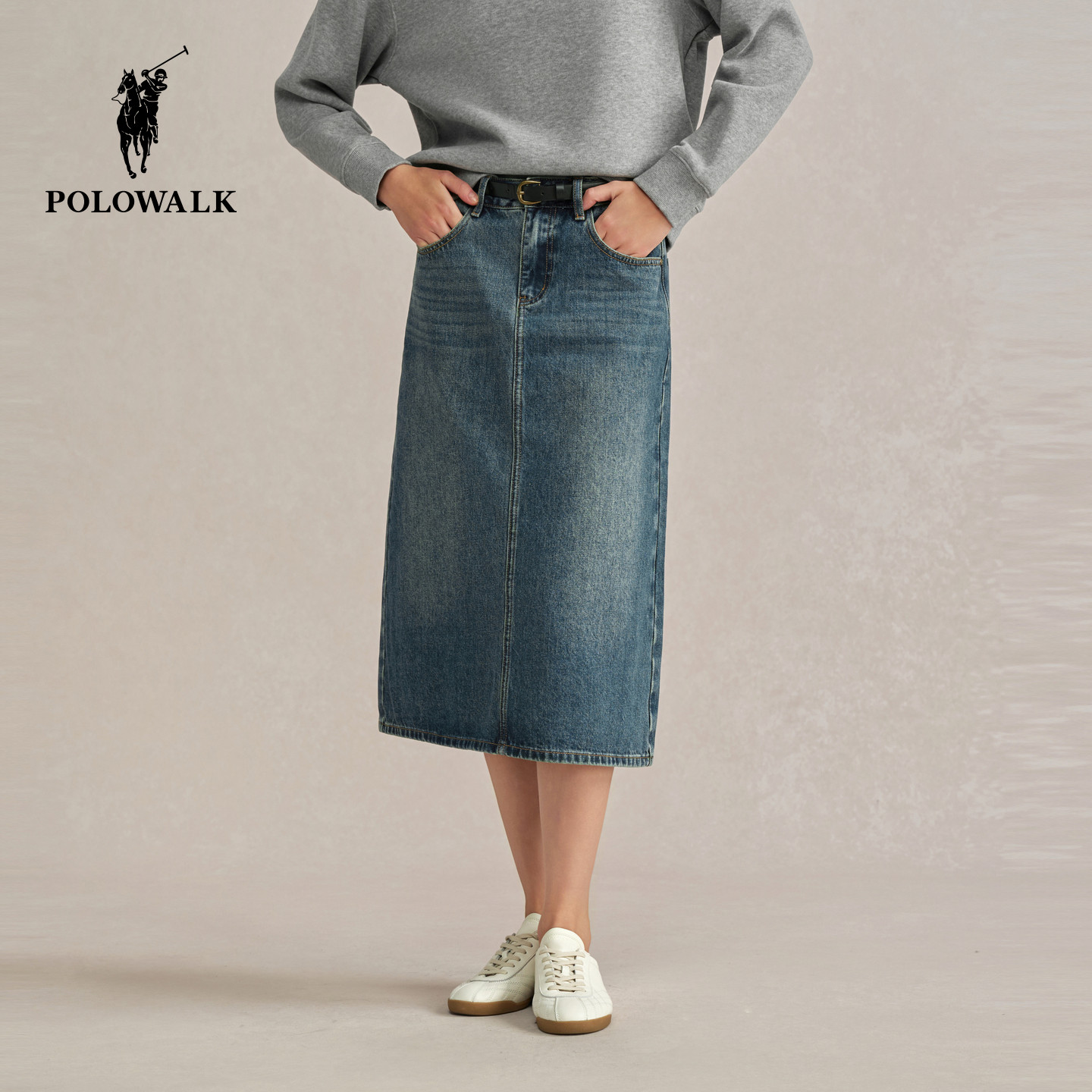 POLOWALK女式半裙2025秋冬裤新品女装时尚百搭直筒中腰牛仔半身裙