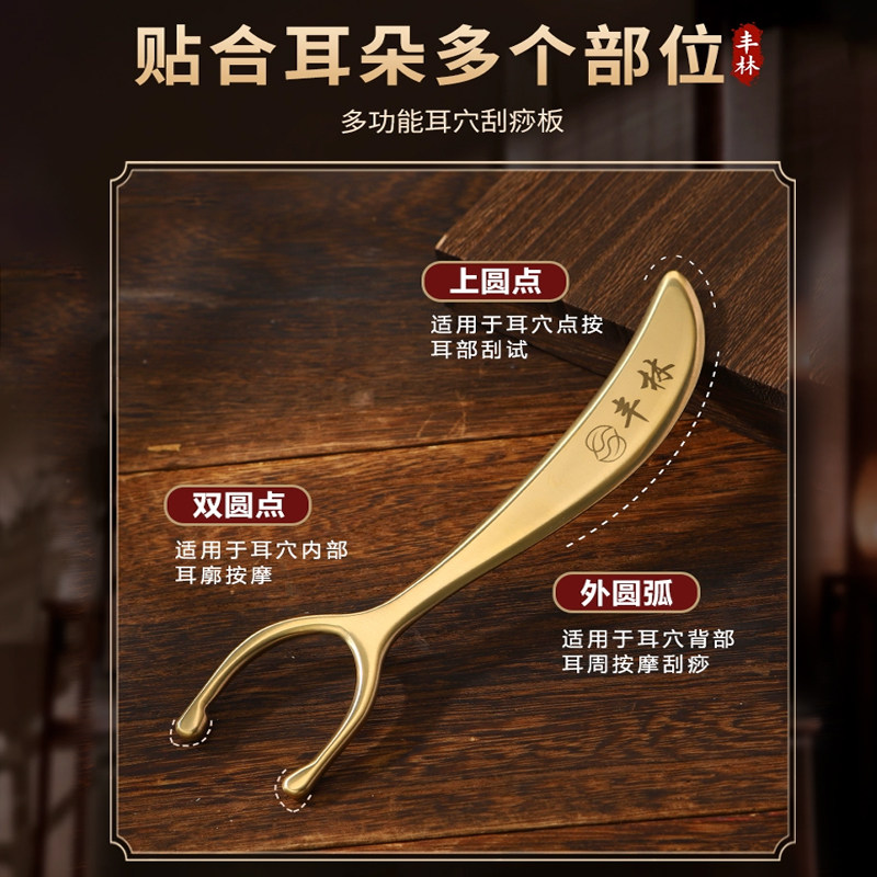 丰林纯黄铜耳穴刮痧板耳朵穴位按摩疏通耳面部提拉经络铜砭刮痧板