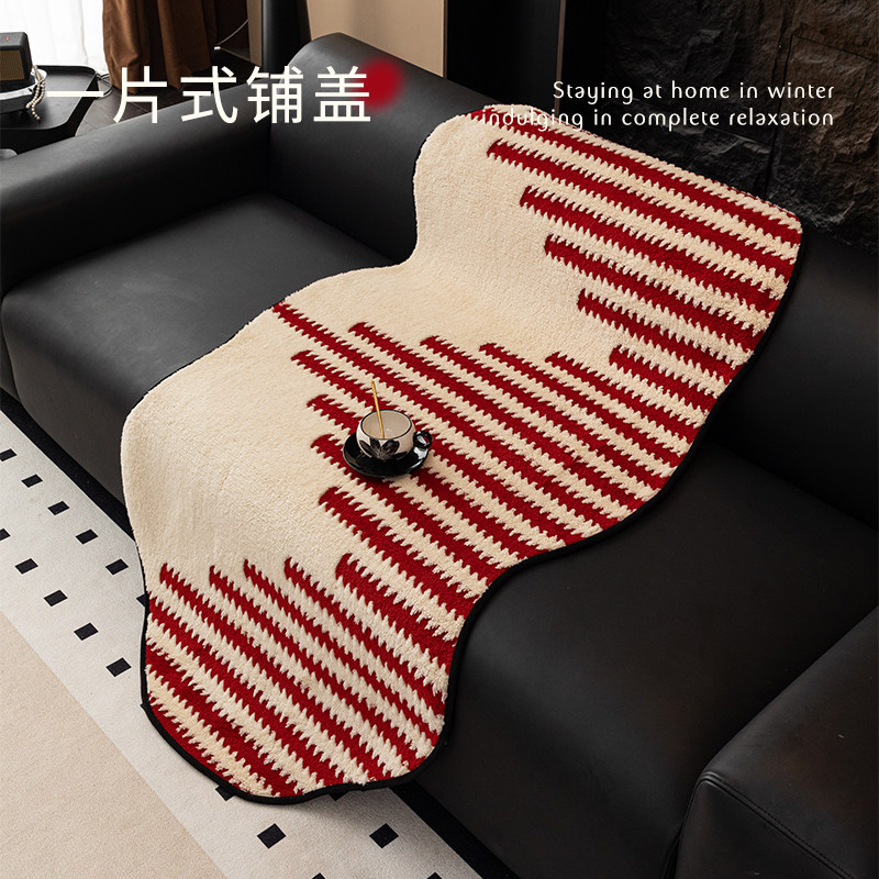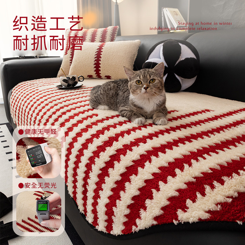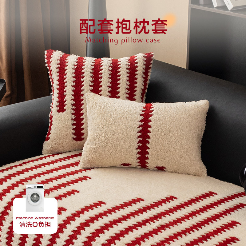 异形沙发垫毛绒2025新款秋冬皮沙发坐垫固定防滑结婚沙发盖布奶油