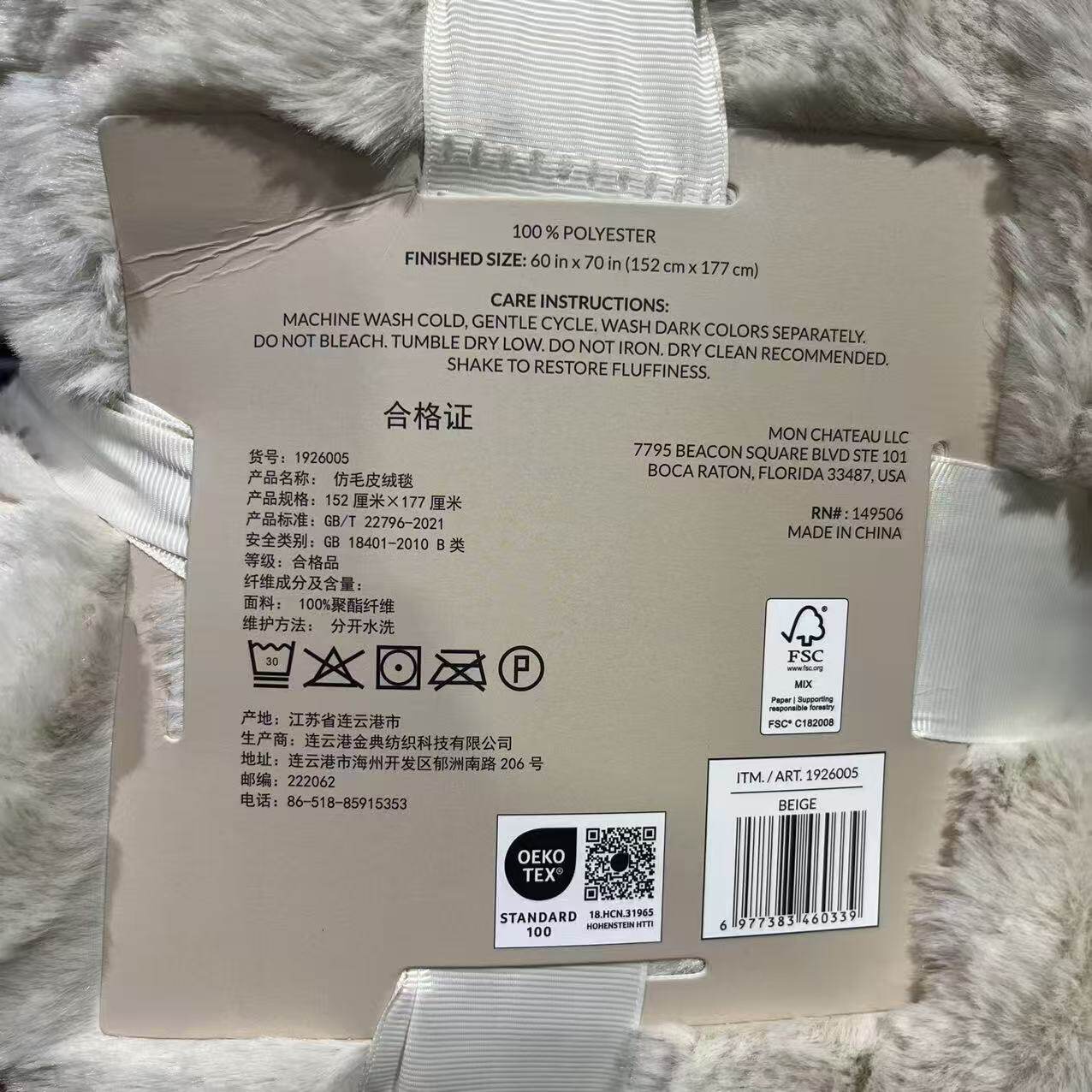 开市客代购 FAUXFURTHROW仿兔毛厚绒毯 柔软舒适质地轻152*177cm