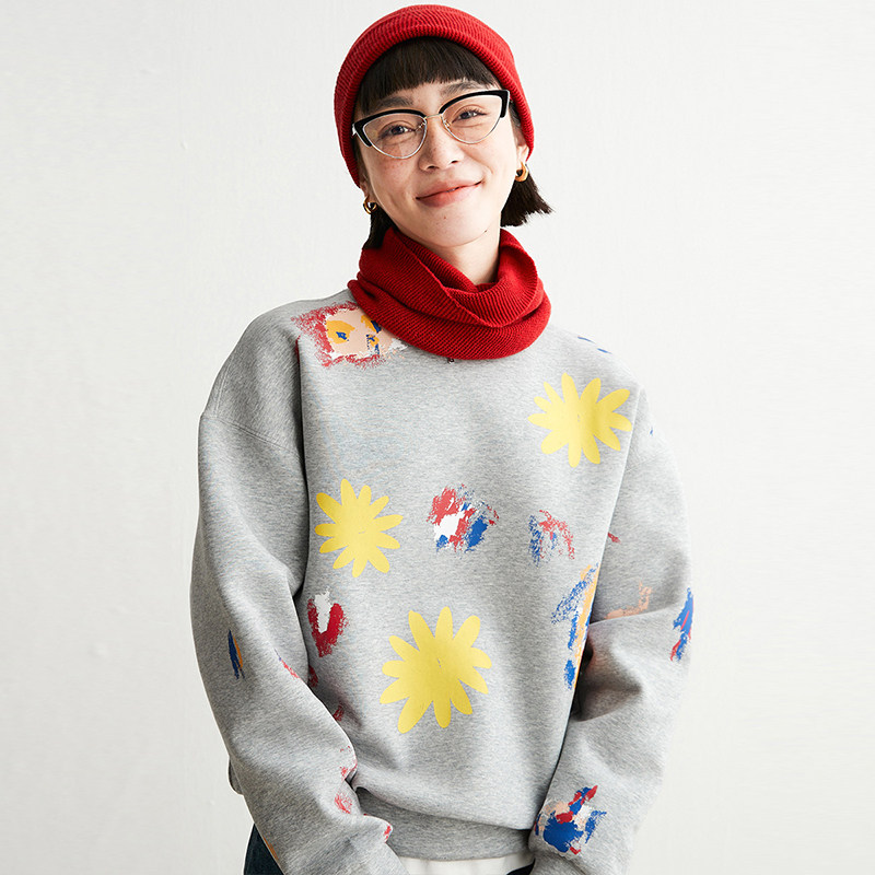 CLOUDSPACE女装撞色艺术感休闲风数码印花空气层廓形卫衣女春季