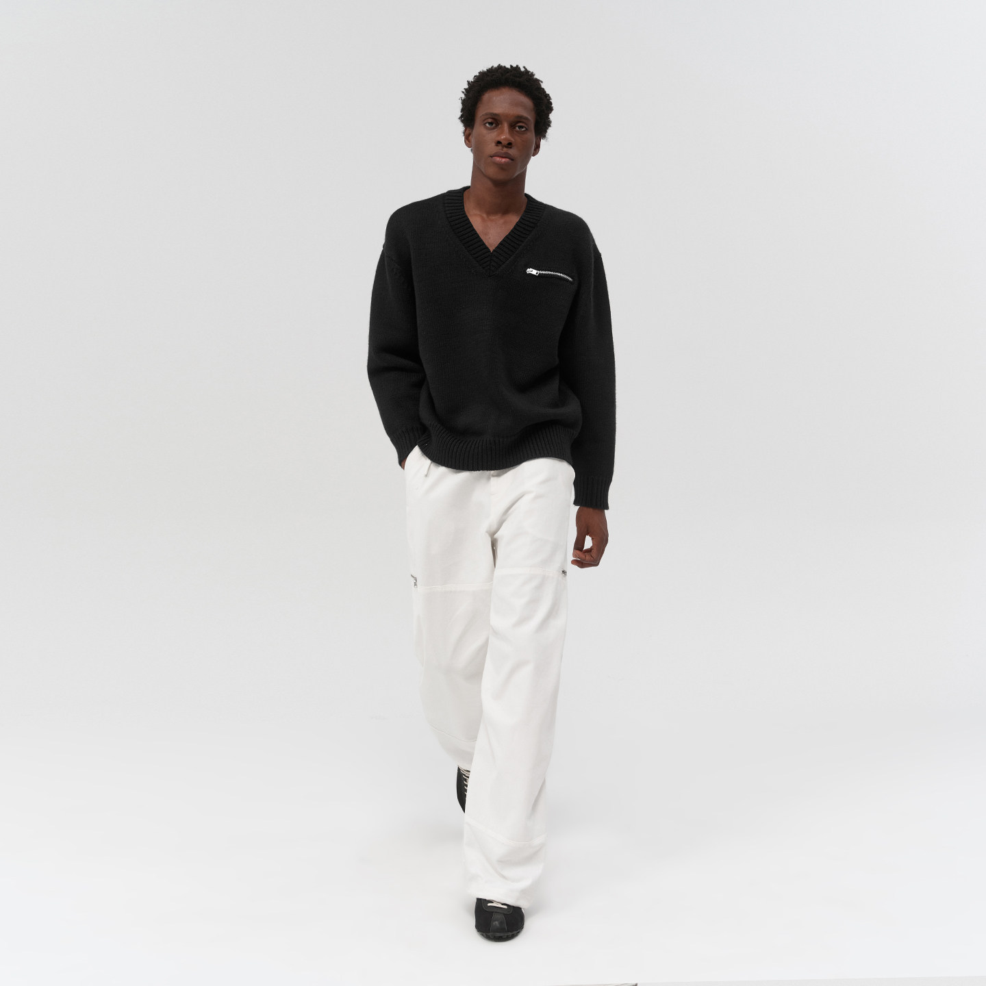 DUPU杜朴 单面织法装饰金齿拉链v领套头毛衣 秋冬舒适学院风