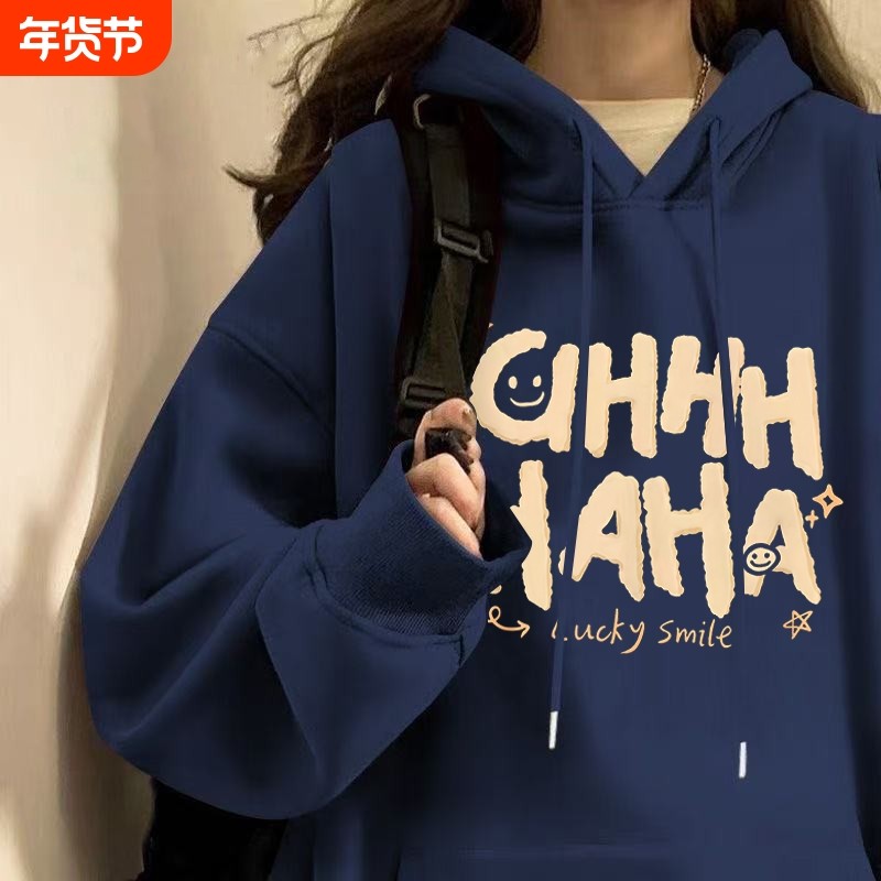 孕妇装韩版设计字母印花连帽卫衣秋冬新款慵懒风百搭加绒上衣薄款