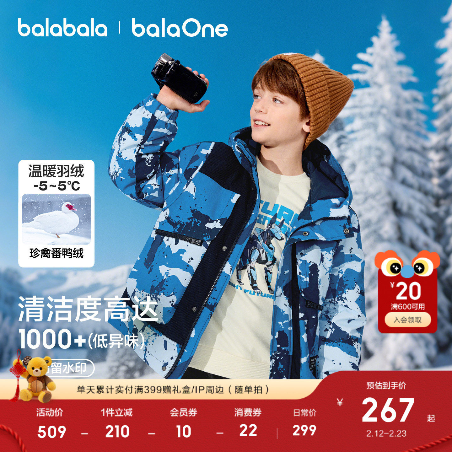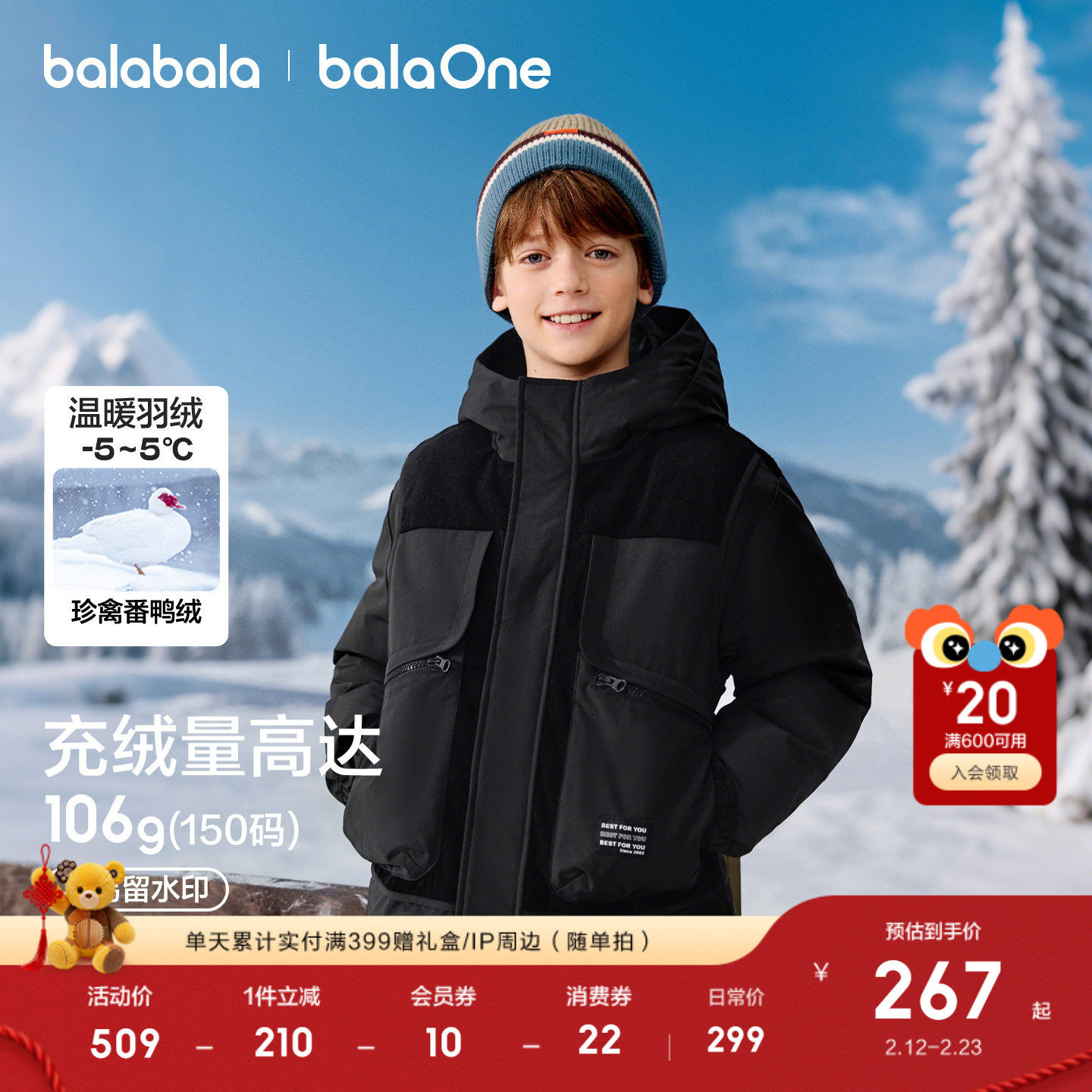 巴拉巴拉童装男童羽绒服2025新款加厚保暖外套防泼水冬假两件儿童