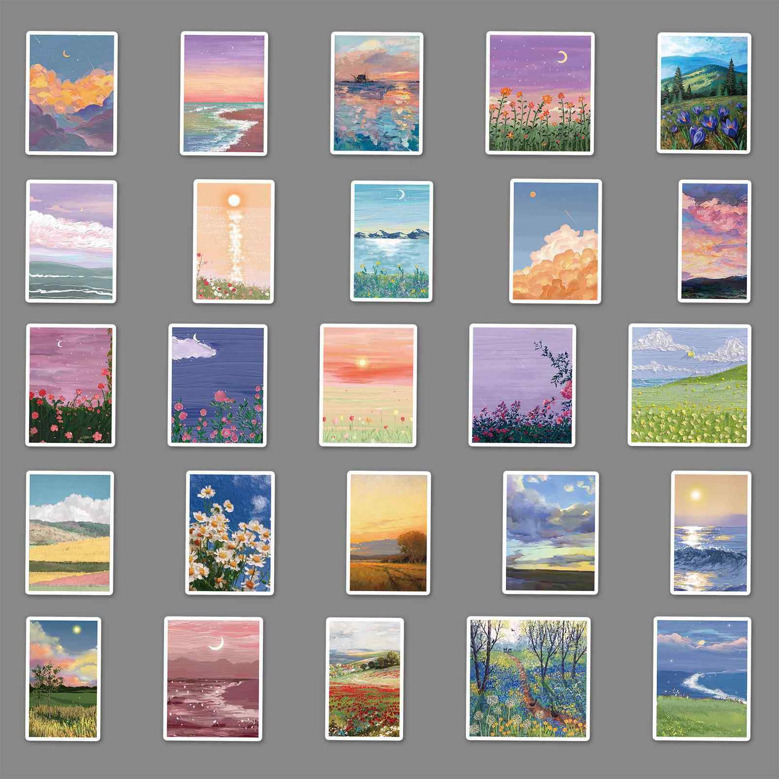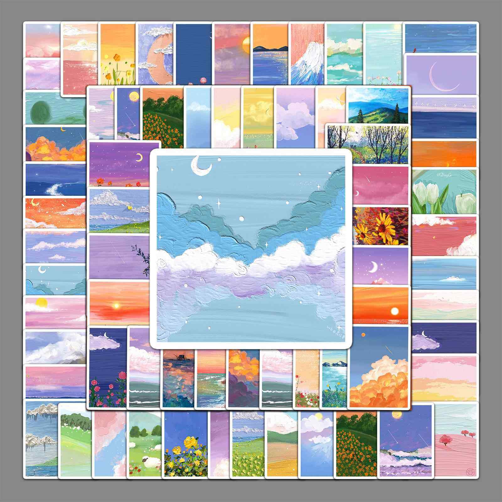 直销新款100张风景油画卡通创意贴纸滑板车行李箱贴纸笔记本电脑