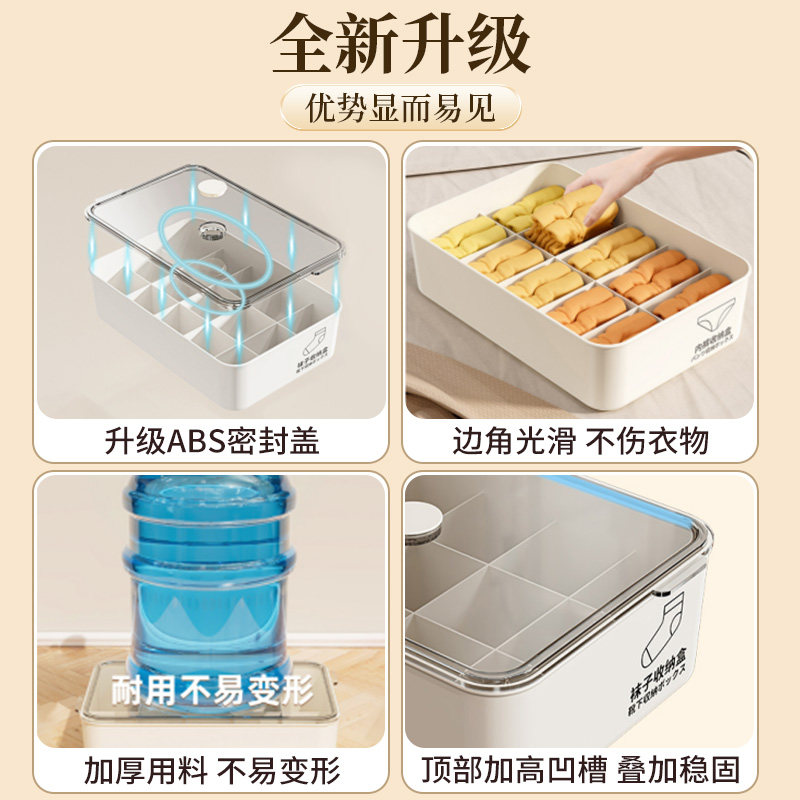 内衣内裤收纳盒家用放袜子神器三合一衣物分格整理盒子带盖衣柜