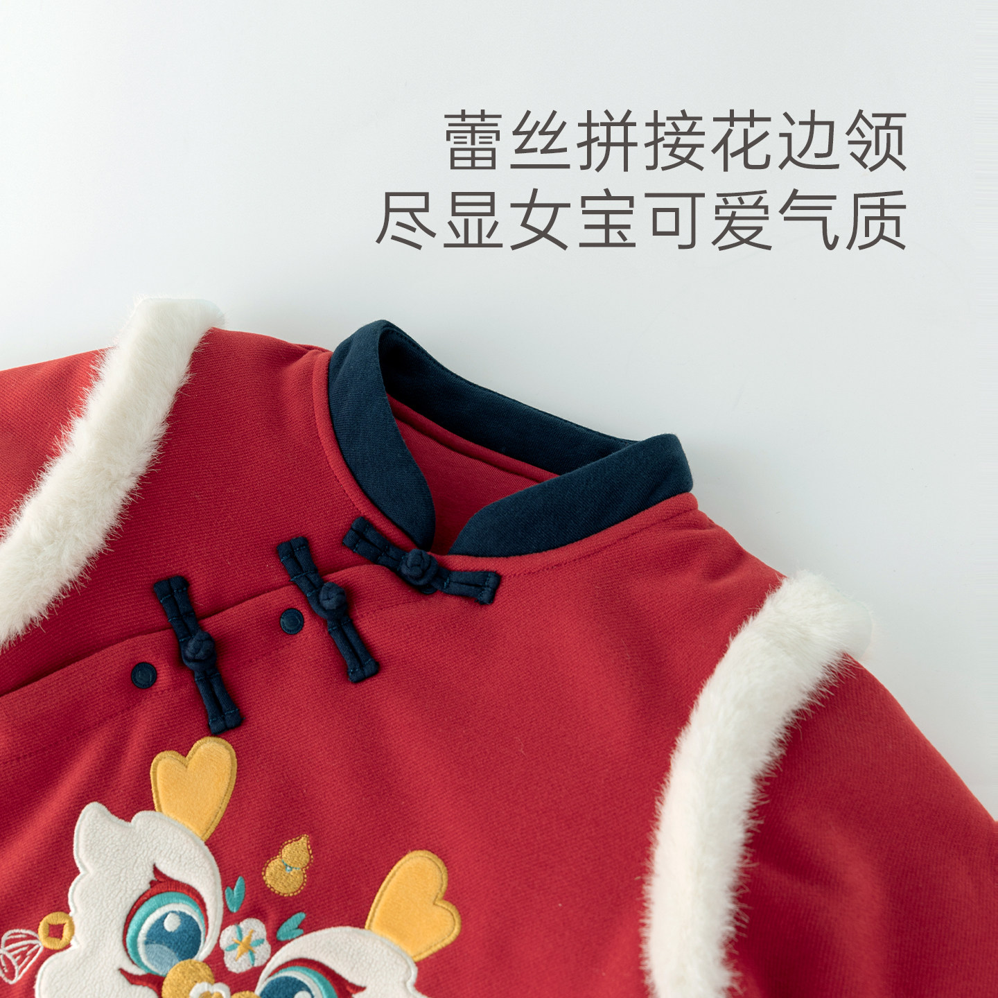 【 3零呵护】宝宝夹棉连体衣冬季婴儿保暖红色哈衣爬服满月新年服
